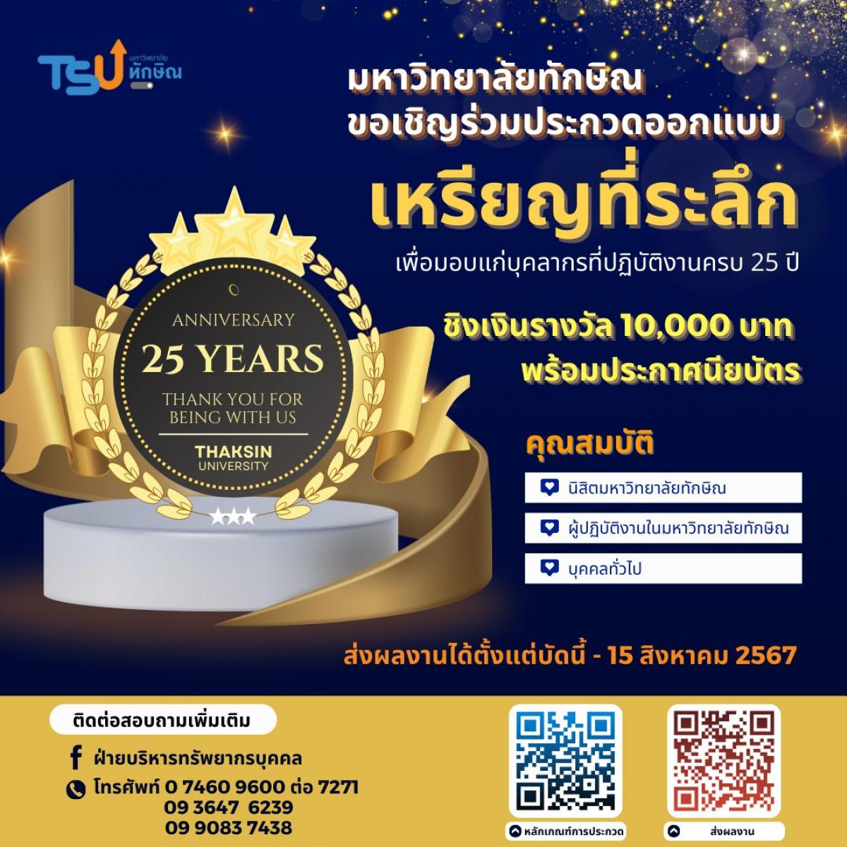 มหาวิทยาลัยทักษิณ ขอเชิญเข้าร่วมประกวดออกแบบเหรียญที่ระลึกเพื่อมอบแก่บุคลากรที่ปฏิบัติงานครบ 25 ปี