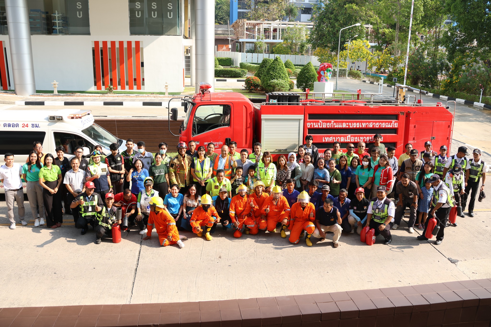 สำนักงานวิทยาเขตสงขลา มหาวิทยาลัยทักษิณ จัดโครงการฝึกทบทวนแผนป้องกันอัคคีภัยและบรรเทาสาธารณภัยในอาคารสูง โดยมี อาจารย์วีณา ลีลาประเสริฐศิลป์ รองอธิการบดี วิทยาเขตสงขลา พร้อมด้วยนายนนทพัทธ์ นวลนิ่ม หัวหน้าสำนักงานวิทยาเขตสงขลา บุคลากรสำนักงานวิทยาเขตสงขลา และผู้แทนหน่วยงานส่วนงานต่าง เจ้าหน้าที่รักษาความปลอดภัย แม่บ้าน ร่วมซักซ้อมแผนเผชิญอัคคีภัย เมื่อวันที่ 26 มีนาคม 2568 ณ ห้อง 14510 อาคาร 50 ปี มหาวิทยาลัยทักษิณ วิทยาเขตสงขลา และบริเวณลานชั้น 1 อาคารคณะศึกษาศาสตร์