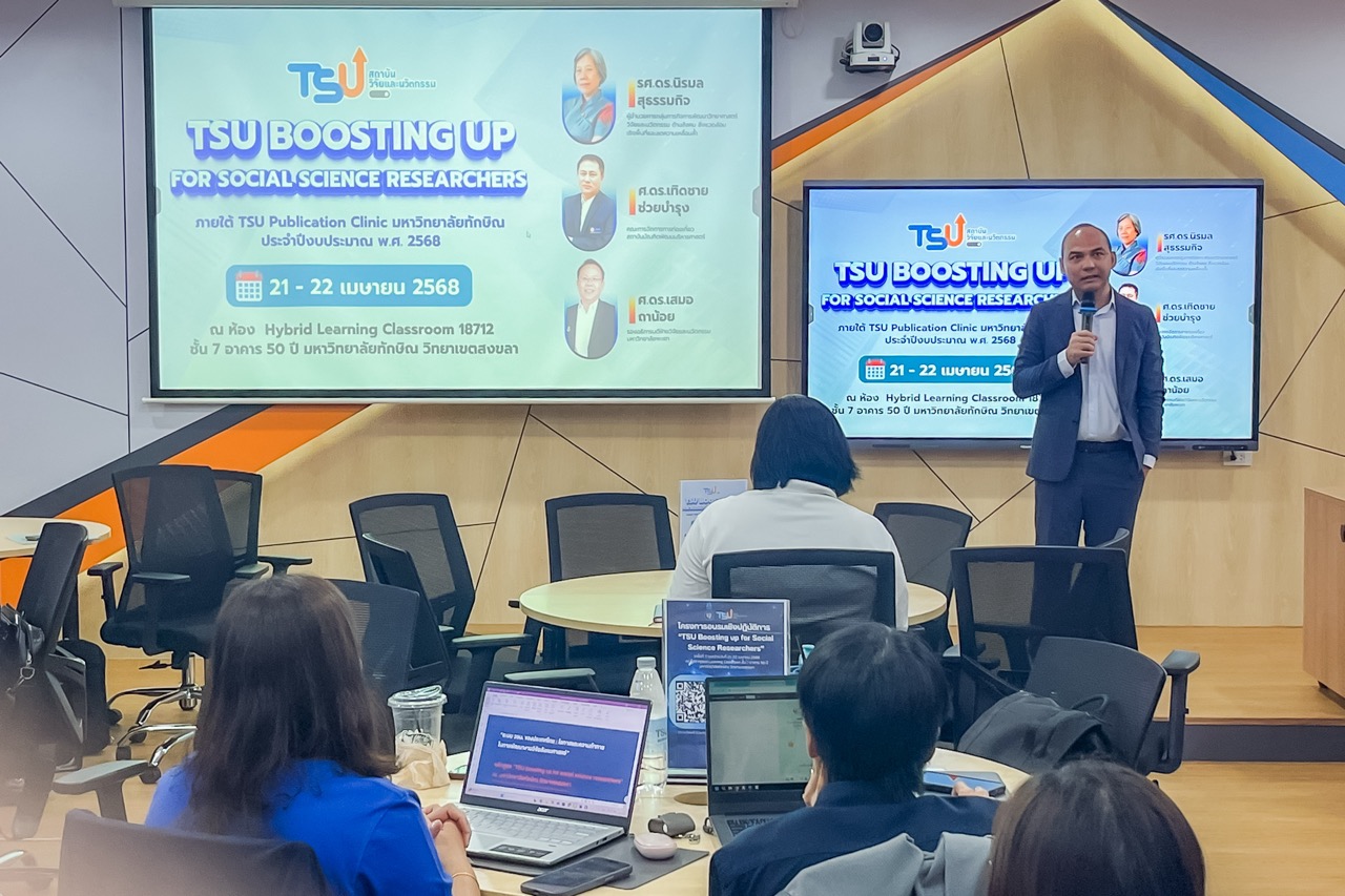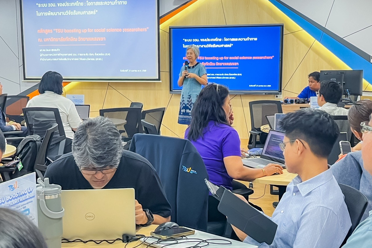 สถาบันวิจัยและนวัตกรรม มหาวิทยาลัยทักษิณ ออกแบบหลักสูตรอบรม “TSU Boosting up” ให้ครอบคลุมมิติต่าง ๆ ของการทำงานวิจัยด้านสังคมศาสตร์ ทั้งในเชิงวิชาการและการใช้ประโยชน์ในสังคม โดยเนื้อหาอบรมประกอบด้วยการพัฒนาทักษะการเขียนข้อเสนอโครงการ (Proposal Writing), การใช้เครื่องมือวิเคราะห์ผลกระทบทางสังคม (SROI), การประยุกต์ใช้เทคโนโลยี AI ในงานวิจัย, รวมถึงแนวทางการเผยแพร่ผลงานในวารสารวิชาการระดับนานาชาติ ภายในหลักสูตรมีการเชิญวิทยากรผู้ทรงคุณวุฒิระดับประเทศจำนวน 12 คน จากหลากหลายสถาบัน อาทิ สำนักงานคณะกรรมการส่งเสริมวิทยาศาสตร์ วิจัยและนวัตกรรม (สกสว.) สำนักงานการวิจัยแห่งชาติ (วช.) ผู้เชี่ยวชาญด้านการพิจารณาโครงการแหล่งทุน PMU นักวิชาการอิสระ สถาบันบัณฑิตพัฒนาบริหารศาสตร์ มหาวิทยาลัยพะเยา มหาวิทยาลัยสงขลานครินทร์ และมหาวิทยาลัยขอนแก่น เพื่อถ่ายทอดประสบการณ์ตรงและโค้ชชิ่งแนวคิดโครงการร่วมกับนักวิจัย