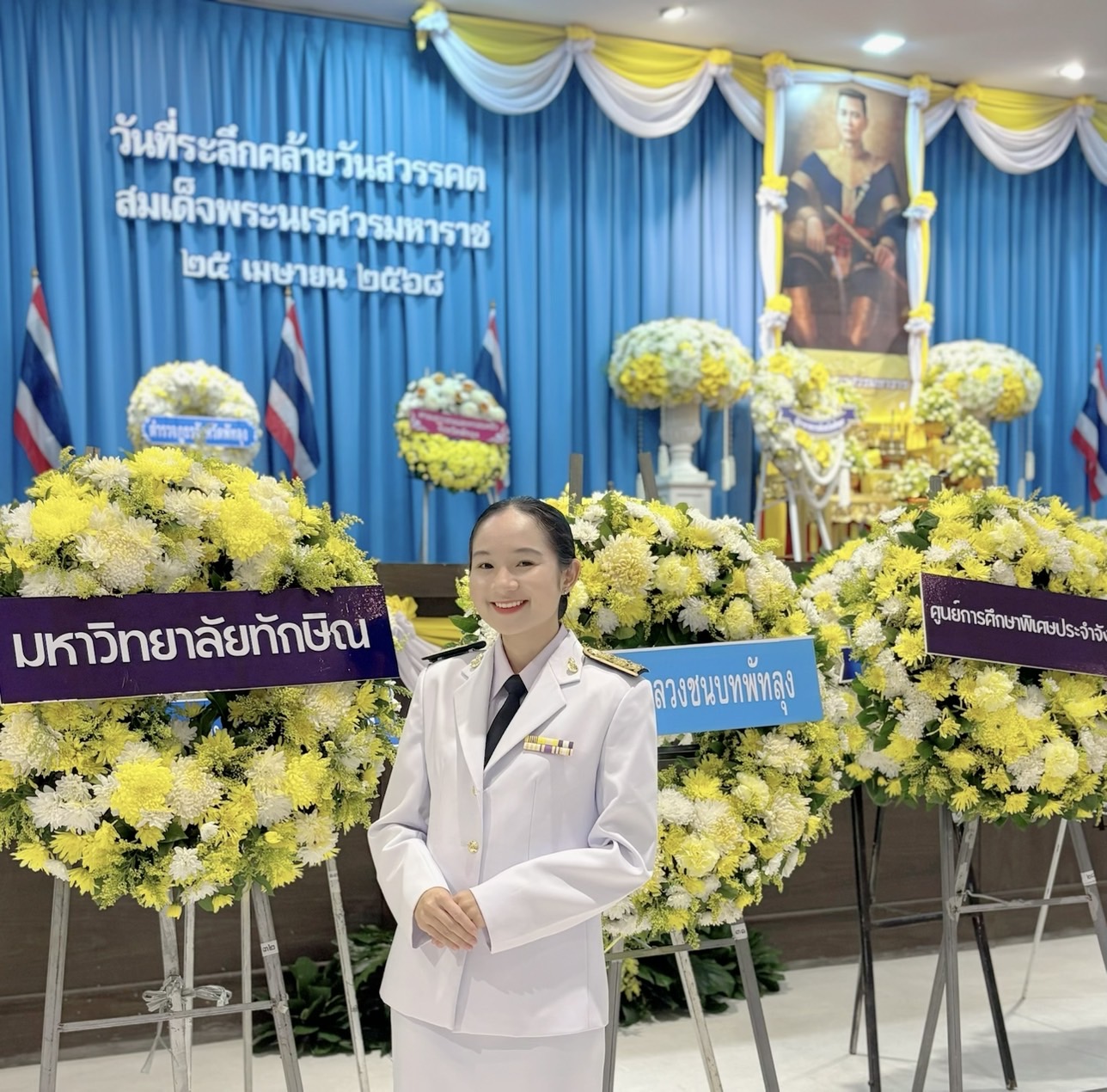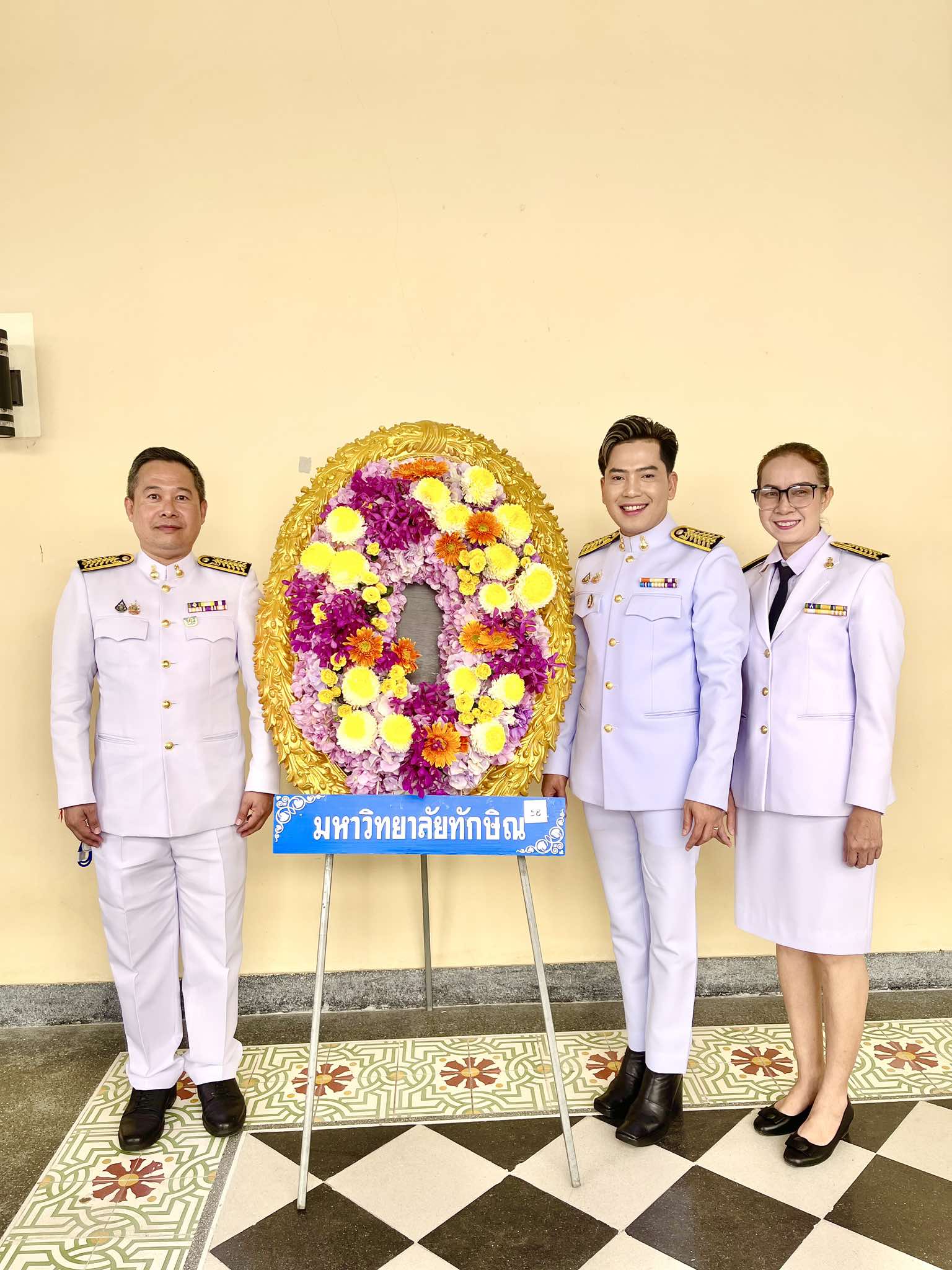 มหาวิทยาลัยทักษิณ วิทยาเขตสงขลา นำโดยผู้ช่วยศาสตราจารย์ ดร.ทวนธง ครุฑจ้อน คณบดีวิทยาลัยการจัดการเพื่อการพัฒนา พร้อมด้วย อาจารย์เสรี บุญรัตน์ รองคณบดีฝ่ายวิชาการ วิจัย และนวัตกรรม  และบุคลากรวิทยาลัยการจัดการเพื่อการพัฒนา (UMDC) มหาวิทยาลัยทักษิณ วิทยาเขตสงขลา เข้าร่วมพิธีวางพวงมาลา ฯ ณ อาคารหอประชุมเปรม 100 ปี โรงเรียนมหาวชิราวุธ อำเภอเมืองสงขลา จังหวัดสงขลา โดยมีนายโชตินรินทร์ เกิดสม ผู้ว่าราชการจังหวัดสงขลา เป็นประธานประกอบพิธีวางพวงมาลาถวายราชสักการะ เนื่องในวันคล้ายวันสวรรคตสมเด็จพระนเรศวรมหาราช ประจำปี 2568