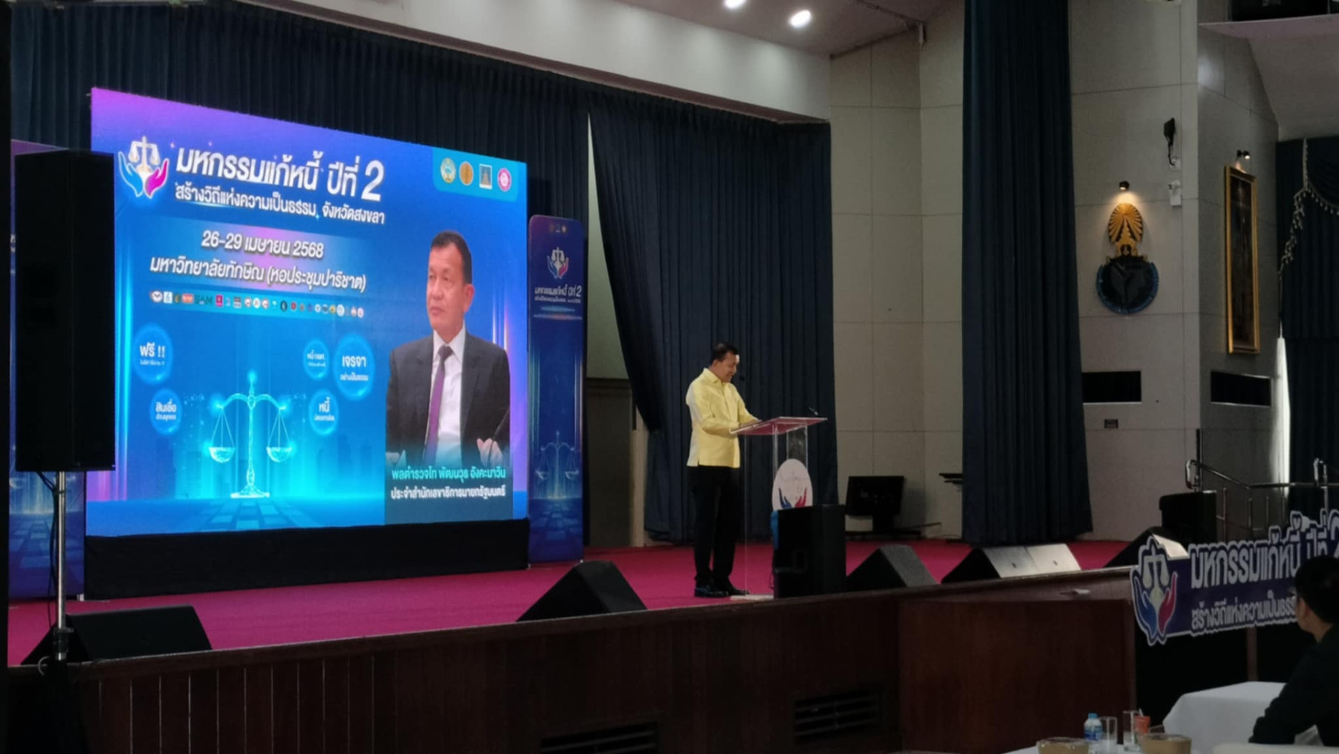 นางสาวเอมอร เสียงใหญ่ อธิบดีกรมคุ้มครองสิทธิและเสรีภาพ ได้กล่าวรายงานถึงวัตถุประสงค์ของโครงการฯ ว่า งาน "มหกรรมแก้หนี้ สร้างวินัยแห่งความเป็นธรรม" ปีที่ 2 โดยกำหนดจัดขึ้นระหว่างวันที่ 26-29 เมษายน 2568 ณ หอประชุมปาริชาต มหาวิทยาลัยทักษิณ จังหวัดสงขลา เป็นการแก้ไขปัญหาหนี้สินอย่างเป็นระบบและยั่งยืน โดยเน้นการสร้างวินัยทางการเงิน และลดการเกิดปัญหาเชิงจริยธรรมทางการเงิน (Moral Hazard)