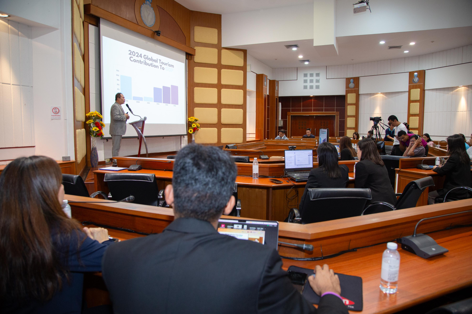 การประชุมในครั้งนี้ได้รับเกียรติจากวิทยากรผู้ทรงคุณวุฒิจากทั้งในและต่างประเทศ ได้แก่ ศาสตราจารย์ ดร.เทิดชาย ช่วยบำรุง ผู้อำนวยการหลักสูตรปรัชญาดุษฎีบัณฑิต คณะการจัดการการท่องเที่ยว สถาบันบัณฑิตพัฒนบริหารศาสตร์ บรรยายในหัวข้อ "Multidisciplinary Sciences for Regenerative Tourism" และ ผศ.ดร.ชวโรฒน์ วัลยเมธี จาก Department of Southeast Asian Languages and Cultures, National Chengchi University, Taiwan บรรยายในหัวข้อ "Multi Cultures and Sustainability: From Taiwan to ASEAN"