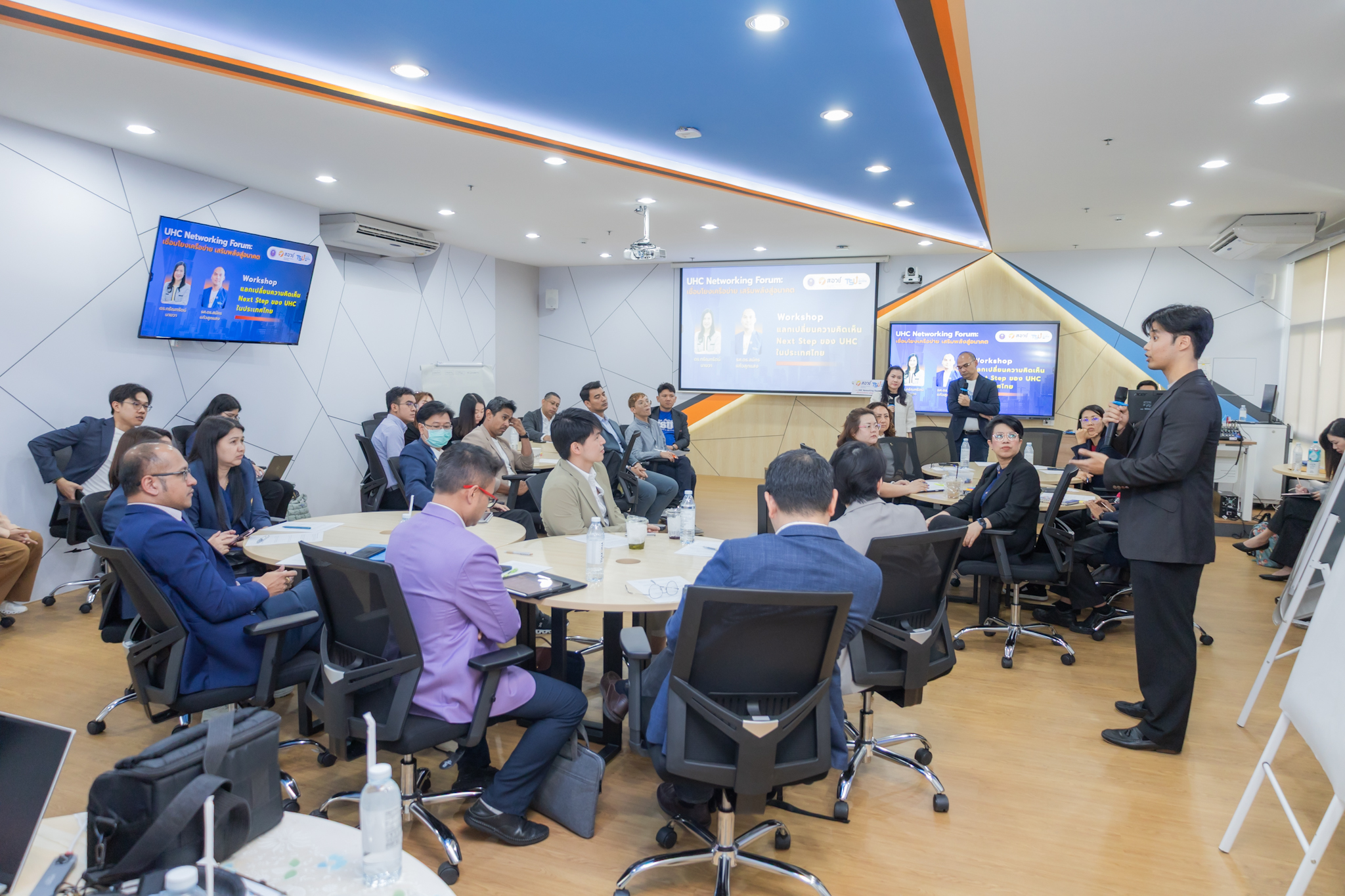 ช่วงบ่ายมี Workshop แลกเปลี่ยนความคิดเห็น เกี่ยวกับจังหวะการขับเคลื่อนของ UHC ในประเทศไทย พร้อมการนำเสนอกรณีศึกษาจาก Startup และโมเดลธุรกิจเพื่อสังคมของมหาวิทยาลัยทักษิณ