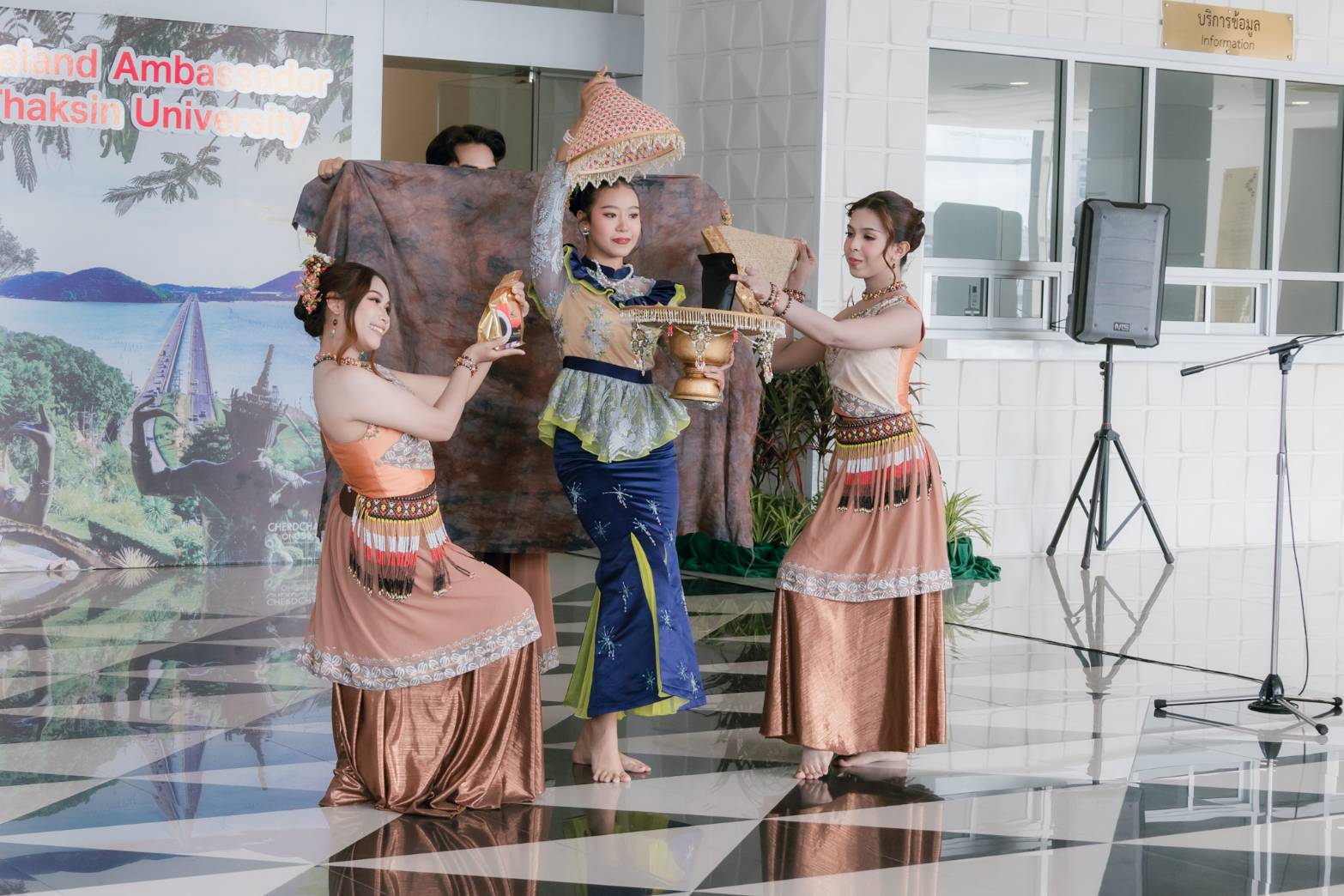 ทั้งยังตื่นตากับการแสดงศิลปะโนราชุดพิเศษ โดยผู้ช่วยศาสตราจารย์ ดร.ธรรมนิตย์ นิคมรัตน์ ศิลปินแห่งชาติ สาขาศิลปะการแสดง (โนรา) และอาจารย์ประจำสาขาวิชาศิลปะการแสดง ร่วมกับนิสิตสาขาวิชาศิลปะการแสดง คณะศิลปกรรมศาสตร์ มหาวิทยาลัยทักษิณ เพื่อเผยแพร่มรดกทางวัฒนธรรมภาคใต้