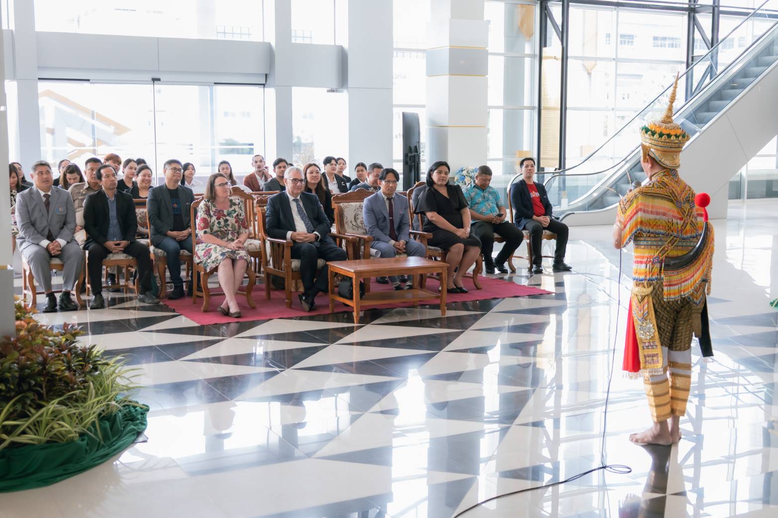 ในโอกาสนี้ ผู้ช่วยศาสตราจารย์นพดล ศุกระกาญจน์ รองอธิการบดีฝ่ายบริหารและกิจการสภามหาวิทยาลัย ได้กล่าวต้อนรับ พร้อมด้วยการนำเสนอวิสัยทัศน์และพันธกิจของมหาวิทยาลัยโดย อาจารย์ ดร.ขวัญจิตต์ สุวรรณนพรัตน์ ผู้ช่วยอธิการบดีฝ่ายวิเทศสัมพันธ์
