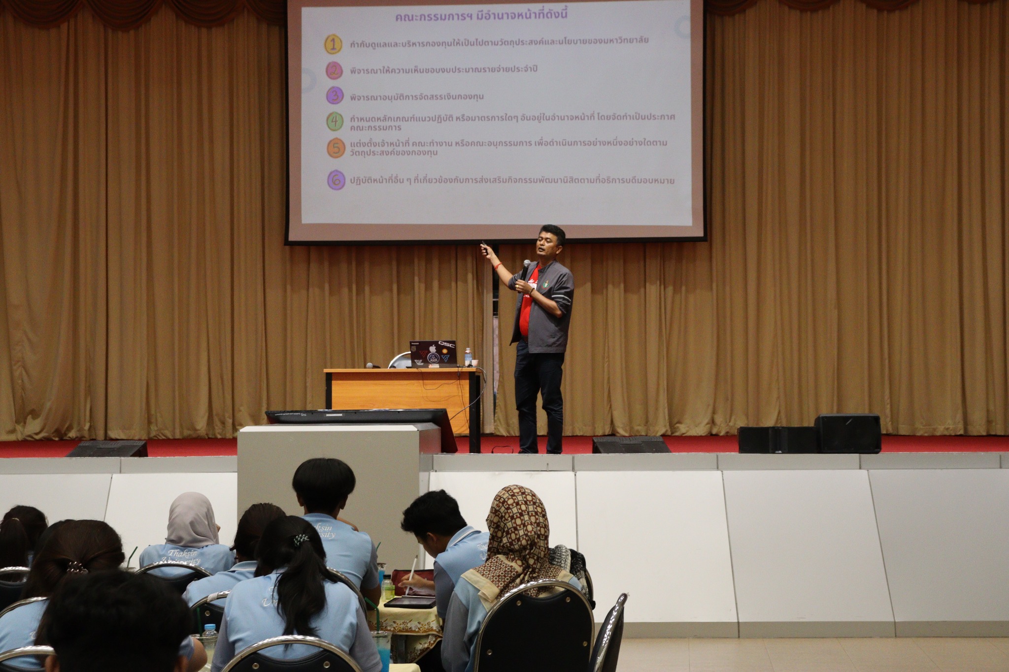 • การบรรยายเรื่อง กองทุนพัฒนานิสิต โดย คุณคำรบ คชภักดี หัวหน้าฝ่ายกิจการนิสิต