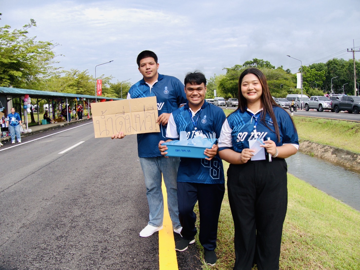 "รับน้ำไหมคะ น้ำเย็นๆ ฟรีค่ะ"