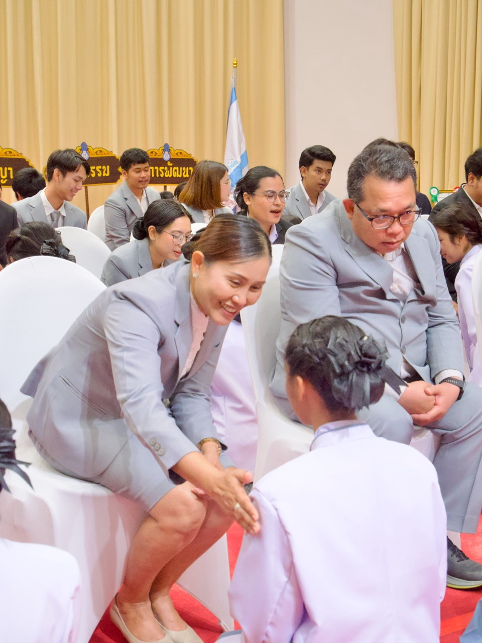 วันพฤหัสบดีที่ 3 กรกฎาคม 2568 ณ หอประชุมเฉลิมพระเกียรติ มหาวิทยาลัยทักษิณ วิทยาเขตพัทลุง โรงเรียนสาธิตมหาวิทยาลัยทักษิณ ฝ่ายมัธยม ได้จัดกิจกรรมวันไหว้ครู “สาธิตฯ วันทา อาจาริยคุณ” (วัฒนธรรมบูชาพระคุณครู) ประจำปีการศึกษา 2568 ขึ้น เพื่อสร้างความเคารพรักและสำนึกในพระคุณของครู ผู้มีบทบาทสำคัญในการอบรมสั่งสอนและให้ความรู้แก่นักเรียน