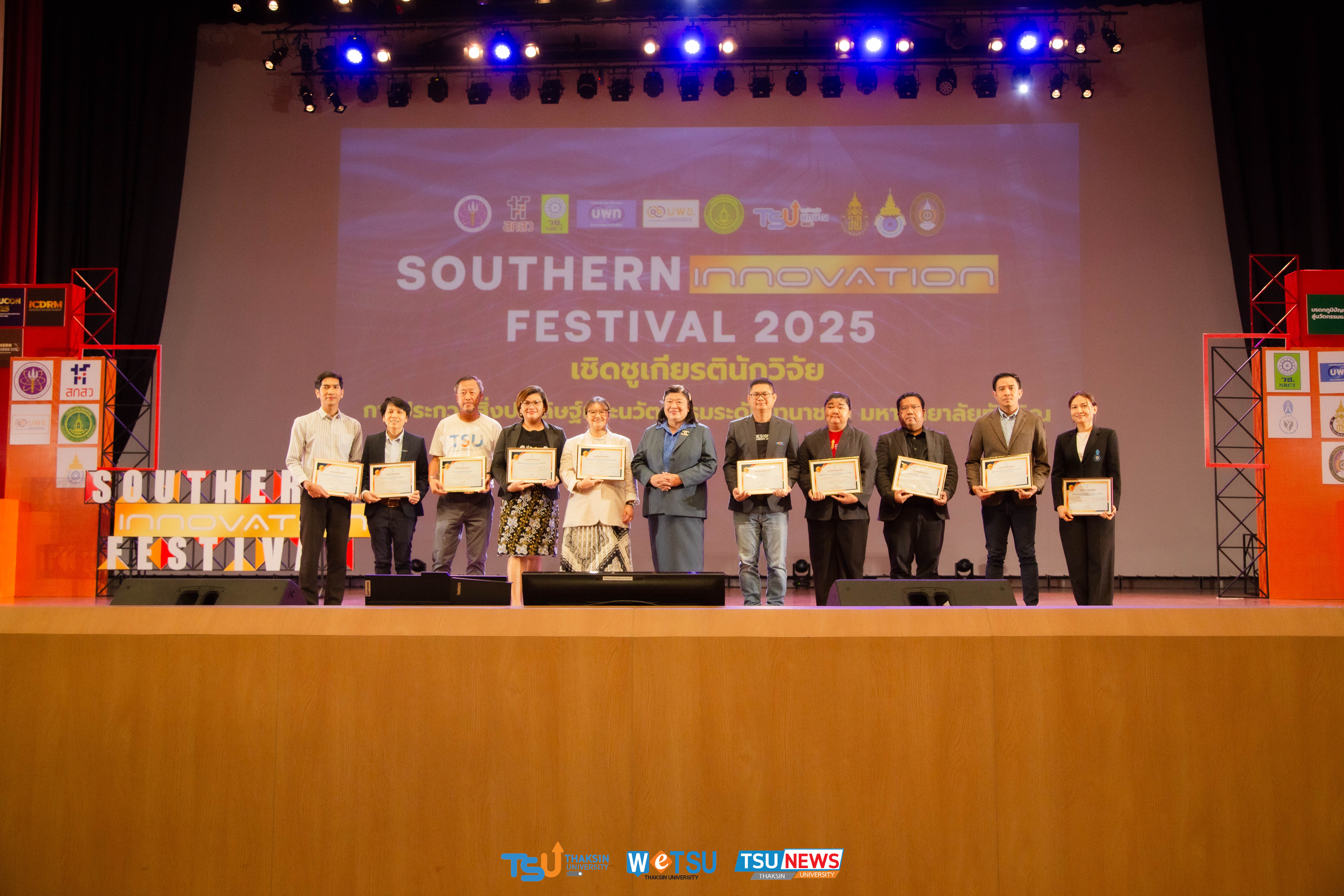 มหาวิทยาลัยทักษิณร่วมกับสำนักงานการวิจัยแห่งชาติ (วช.) และหน่วยงานพันธมิตร จัดงาน “Southern Innovation Fair 2025” ระหว่างวันที่ 17–19 กรกฎาคม 2568 ณ หอเปรมดนตรี มหาวิทยาลัยทักษิณ วิทยาเขตสงขลา ชูบทบาทศูนย์กลางการสร้างองค์ความรู้และนวัตกรรมของภาคใต้ ภายในงานพบกับผลงานวิจัยและสิ่งประดิษฐ์กว่า 500 ชิ้น อีกทั้งยังมีการประชุมวิชาการระดับชาติและนานาชาติ โครงการเผยแพร่ความรู้มรดกภูมิปัญญาทางวัฒนธรรม พร้อมเปิดเวทีเยาวชนประกวดสิ่งประดิษฐ์และนวัตกรรม ดันงานวิจัยไทยสู่การใช้ประโยชน์อย่างยั่งยืนทั้งในระดับภูมิภาคและระดับโลก