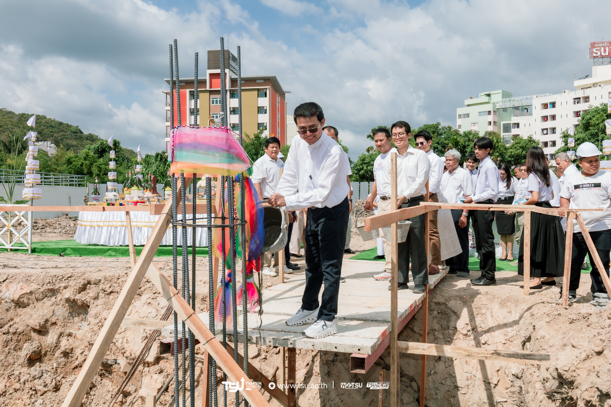 โรงเรียนสาธิตมหาวิทยาลัยทักษิณ ฝ่ายประถม จัดพิธีวางศิลาฤกษ์และลงเสาเอก เพื่อความเป็นสิริมงคลมงคลในการก่อสร้าง