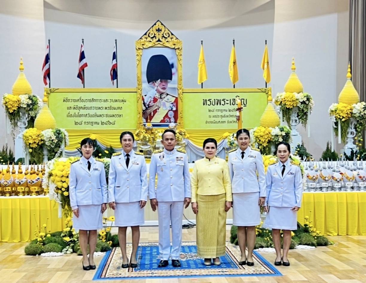 ผู้แทนมหาวิทยาลัยทักษิณ ร่วมพิธีเฉลิมพระเกียรติวางพานพุ่มถวายราชสักการะและจุดเทียนถวายพระพรชัยมงคล เนื่องในวันเฉลิมพระชนมพรรษา พระบาทสมเด็จพระเจ้าอยู่หัว 28 กรกฎาคม 2568