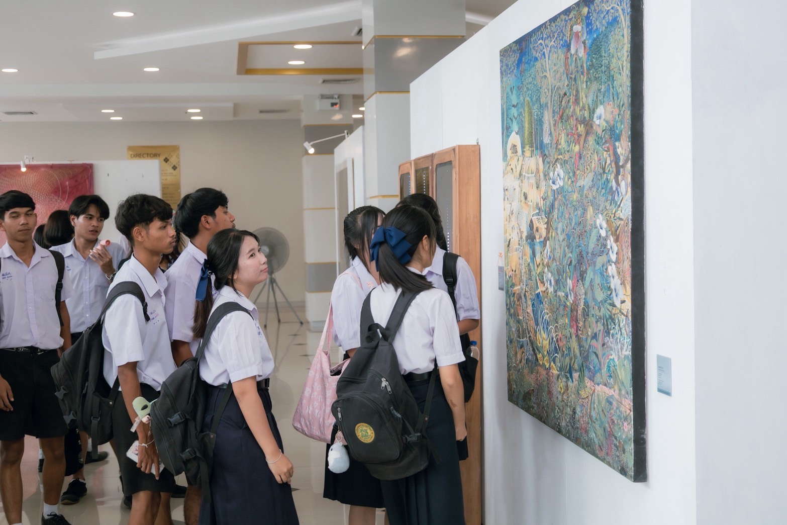 สำหรับภาคบ่าย งานสื่อสารองค์กร ได้นำคณะครูและนักเรียน เยี่ยมชมนิทรรศการศิลปกรรมแห่งชาติ ครั้งที่ 69 The 69th National Exhibition of Art  ซึ่งคณะศิลปกรรมศาสตร์ ได้ร่วมกับ หอศิลป์ มหาวิทยาลัยศิลปากร  จัดแสดงโชว์ผลงานศิลปกรรมร่วมสมัยของศิลปินทั่วประเทศ จำนวน 164 ชิ้น จากศิลปิน 122 ท่าน ขับเคลื่อนศิลปะสู่ภูมิภาค ณ หอเปรมดนตรีมหาวิทยาลัยทักษิณ วิทยาเขตสงขลา  พร้อมนำชมภูมิทัศน์โดยรอบมหาวิทยาลัยทักษิณ วิทยาเขตสงขลา  พร้อมกันนี้ ได้เยี่ยมชมการเรียนการสอน และห้องปฏิบัติการของคณะศึกษาศาสตร์และคณะนิติศาสตร์