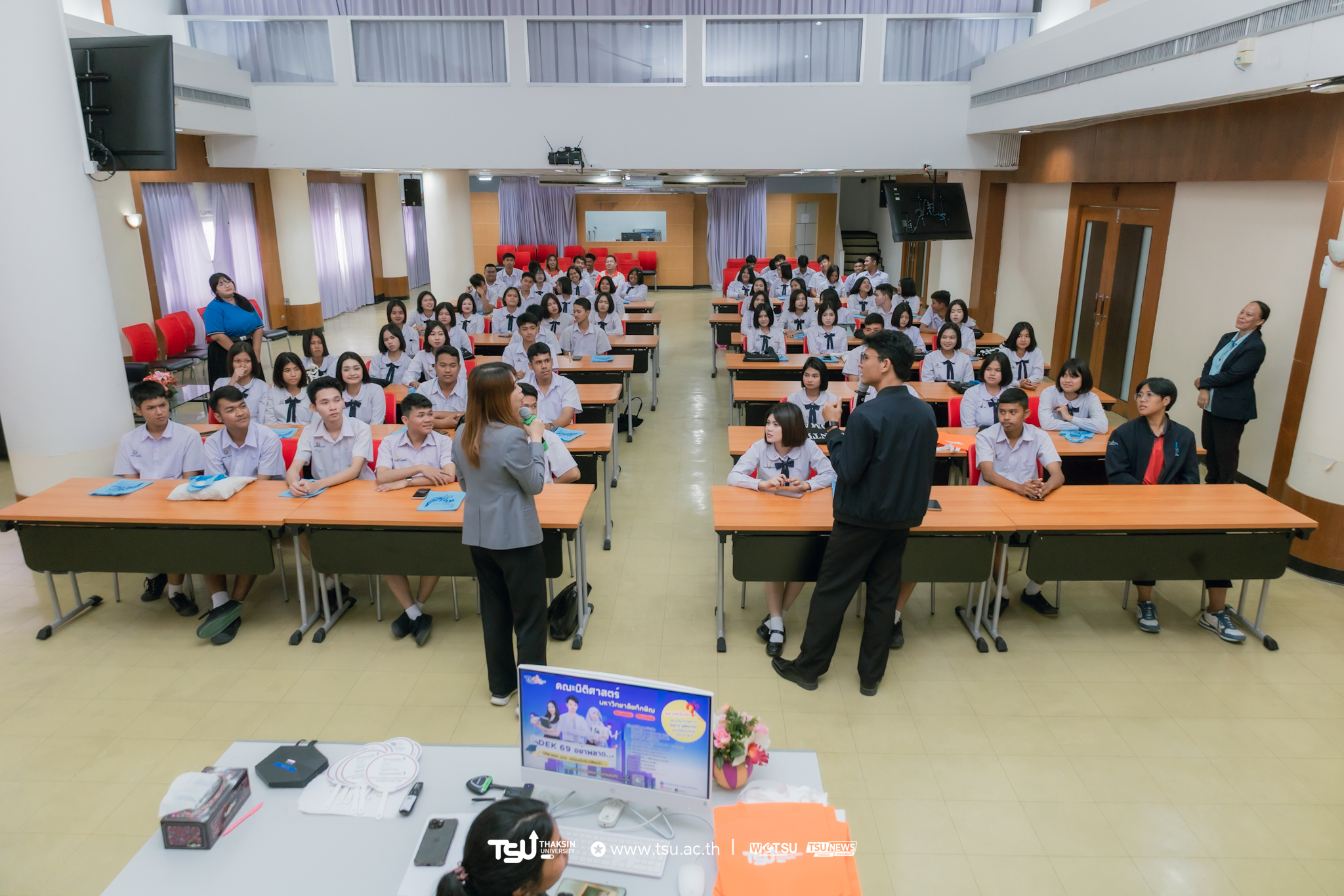 ในโอกาสนี้ ผู้ช่วยศาสตราจารย์ ดร.ทวนธง ครุฑจ้อน คณบดีวิทยาลัยการจัดการเพื่อการพัฒนา กล่าวต้อนรับพร้อมแนะนำการจัดการเรียนการสอนโดยภาพรวมของมหาวิทยาลัยทักษิณ  หลังจากนั้นผู้ช่วยศาสตราจารย์ชลีรัตน์ มเหสักขกุล ผู้ช่วยคณบดีฝ่ายสื่อสารองค์กรและกิจการพิเศษ  คณะนิติศาสตร์ พร้อมด้วยบุคลากรคณะศึกษาศาสตร์ และงานสื่อสารองค์กร ได้ให้ข้อมูลหลักสูตรที่เปิดสอน และเทคนิคการพิชิตใจกรรมการในการสมัครสอบเข้าศึกษาต่อมหาวิทยาลัยทักษิณ และแนะนำวิธีการสร้างพอร์ตโฟลิโอสำหรับการสมัครเรียนสำหรับรอบพอร์ตโฟลิโออีกด้วย
