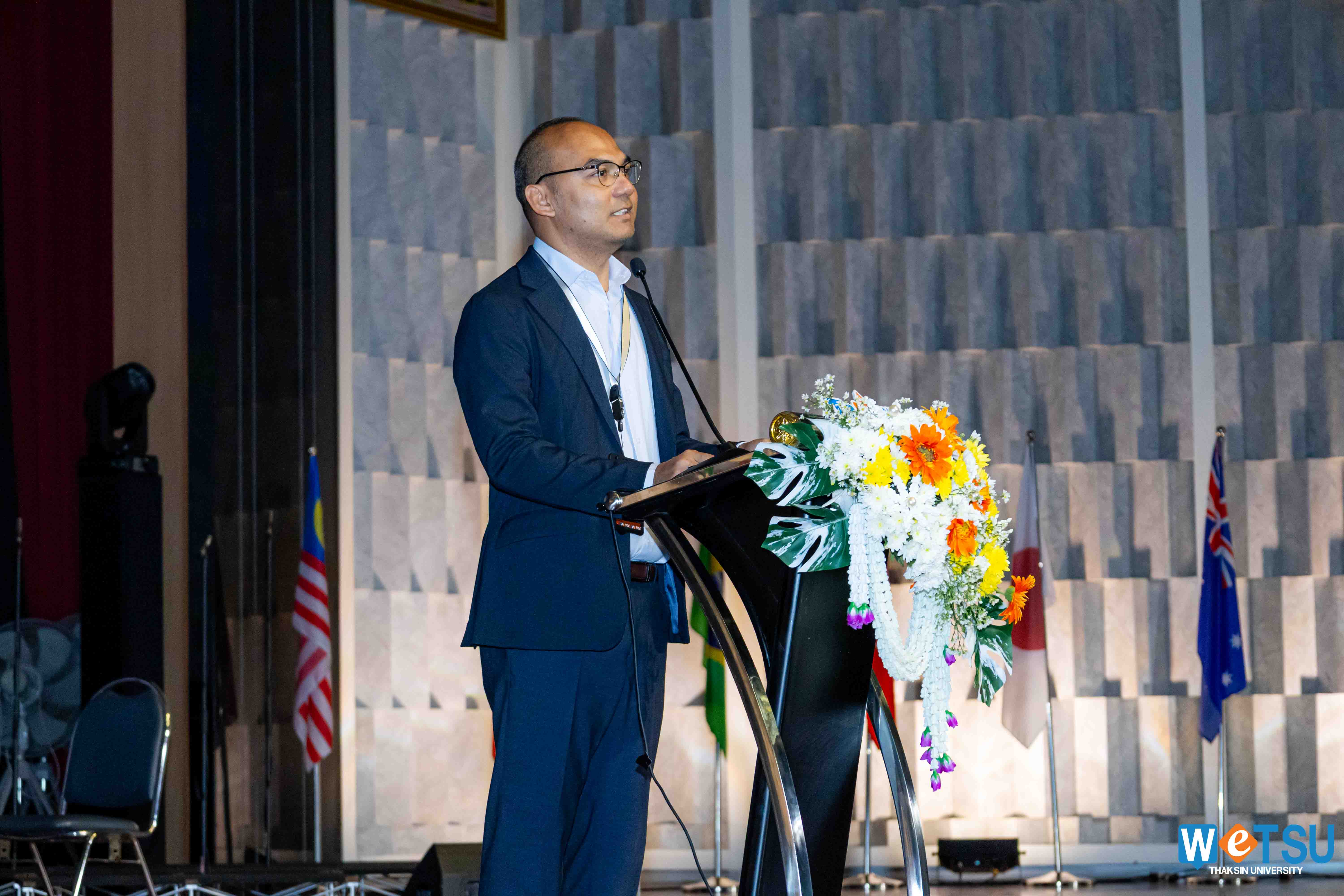 รองศาสตราจารย์ ดร.ณฐพงศ์ จิตรนิรัตน์ อธิการบดีมหาวิทยาลัยทักษิณ กล่าวเปิดการประชุมว่า “การเป็นเจ้าภาพ WTUC 2025 คือโอกาสสำคัญที่สะท้อนศักยภาพของมหาวิทยาลัยในฐานะ ขุมพลังแห่งการเปลี่ยนแปลง และ สะพานเชื่อมระหว่างความเป็นท้องถิ่นกับความเป็นสากล ที่นำองค์ความรู้ วิทยาศาสตร์ และเทคโนโลยี มาสู่การพัฒนาที่ยั่งยืนของทุกคน” พร้อมย้ำวิสัยทัศน์ของมหาวิทยาลัยในการมุ่งสู่การเป็น มหาวิทยาลัยนวัตกรรมสังคมระดับแนวหน้าของประเทศ ภายในปี 2570 ภายใต้แนวคิด ‘จากรากสู่โลก จากโลกสู่เรา’ ซึ่งเป็นหัวใจของการเป็น University of Glocalization