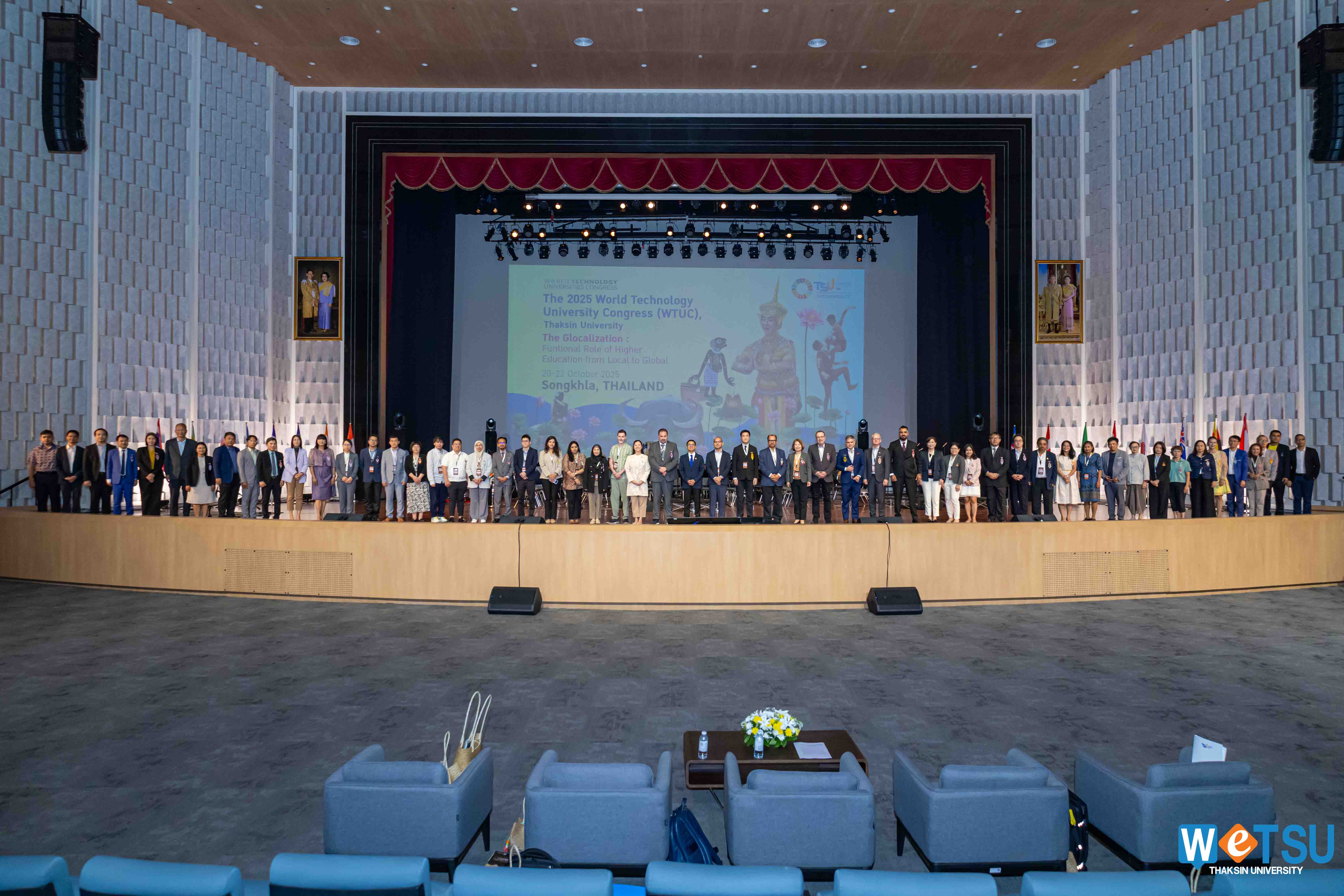 มหาวิทยาลัยทักษิณ จัดการประชุมระดับนานาชาติ World Technology Universities Congress 2025 (WTUC 2025) ภายใต้ธีม “The Glocalization: Functional Role of Higher Education from Local to Global” การประชุมครั้งนี้เป็นการประชุมกรรมการระดับดำเนินการและระดับผู้บริหาร จากมหาวิทยาลัยเทคโนโลยีในเครือข่าย ร่วมประชุมแลกเปลี่ยนแนวปฏิบัติ นโยบาย เป้าหมายและการขับเคลื่อนเครือข่ายมหาวิทยาลัยเทคโนโลยีร่วมกัน ซึ่งกิจกรรมในครั้งนี้จัดขึ้นระหว่างวันที่ 20–22 ตุลาคม 2568 ณ หอเปรมดนตรี มหาวิทยาลัยทักษิณ วิทยาเขตสงขลา โดยมีคณะผู้บริหาร นักวิชาการ นักวิจัย และผู้แทนจากเครือข่าย World Technology Universities Network (WTUN) จำนวน 16 ประเทศ เข้าร่วมแลกเปลี่ยนองค์ความรู้ นโยบาย และแนวปฏิบัติในการขับเคลื่อนอุดมศึกษาสู่ความยั่งยืนระดับโลก