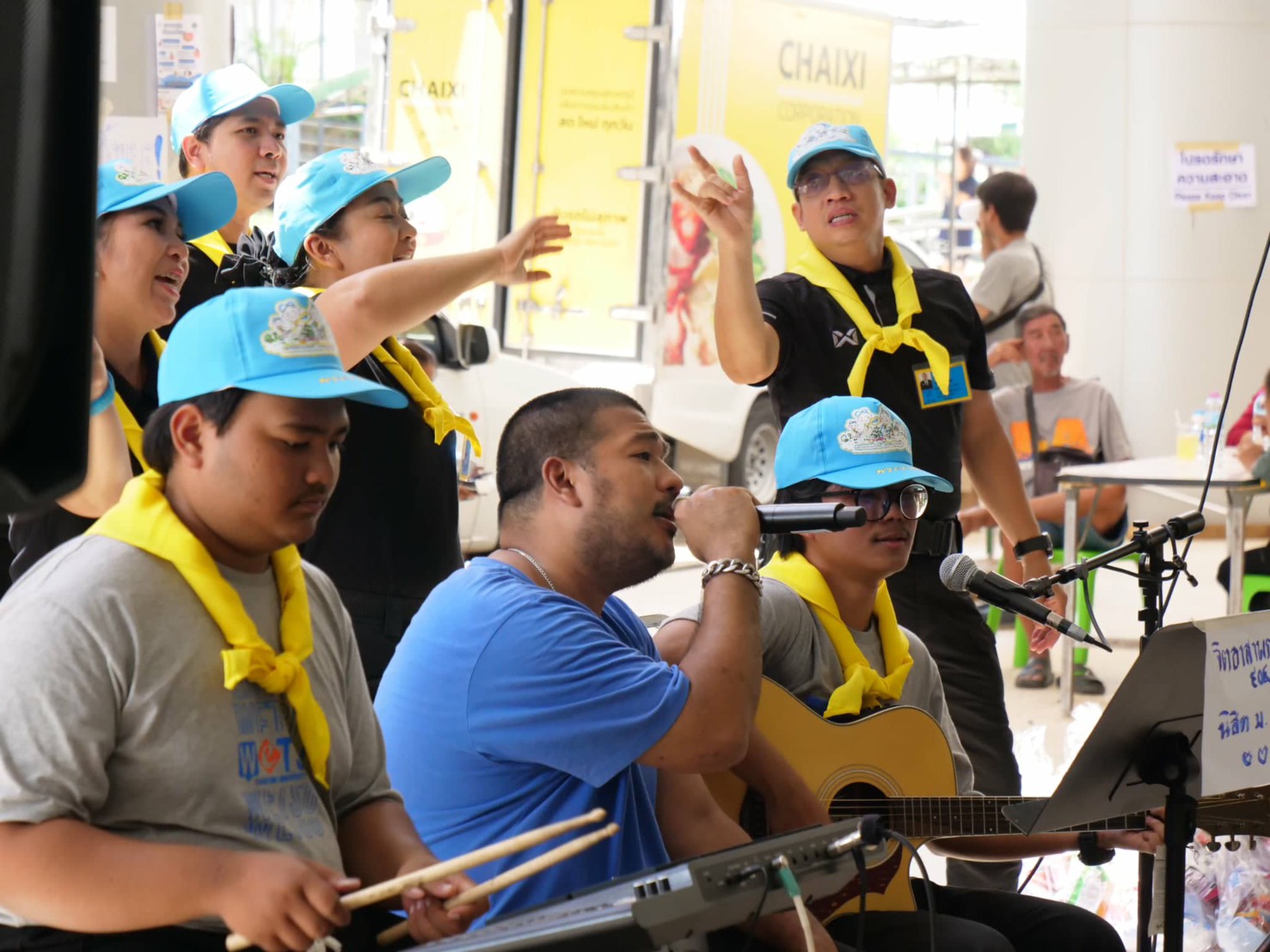 ในการนี้อาจารย์และนิสิตสาขาวิชาดุริยางคศาสตร์ เอกดนตรีสากล และเอกเทคโนโลยีธุรกิจดนตรี ได้ร่วมจัดการแสดงดนตรีโฟล์คซอง พร้อมนำอุปกรณ์ระบบเสียงลงพื้นที่ เพื่อสร้างบรรยากาศแห่งความผ่อนคลาย และเป็นกำลังใจให้แก่ผู้ประสบภัยที่พักอาศัยอยู่ภายในศูนย์พักพิงดังกล่าว โดยมีผู้ประสบภัยเข้าร่วมกิจกรรมเป็นจำนวนมาก ทั้งร่วมร้องเพลงกับวงดนตรี กิจกรรมสันทนาการ และการเต้นรำ รวมถึงสนทนาแลกเปลี่ยนเพื่อสร้างขวัญกำลังใจ ซึ่งผู้เข้าร่วมกิจกรรมต่างแสดงความพึงพอใจต่อบทเพลงจากอาจารย์และนิสิตมหาวิทยาลัยทักษิณ