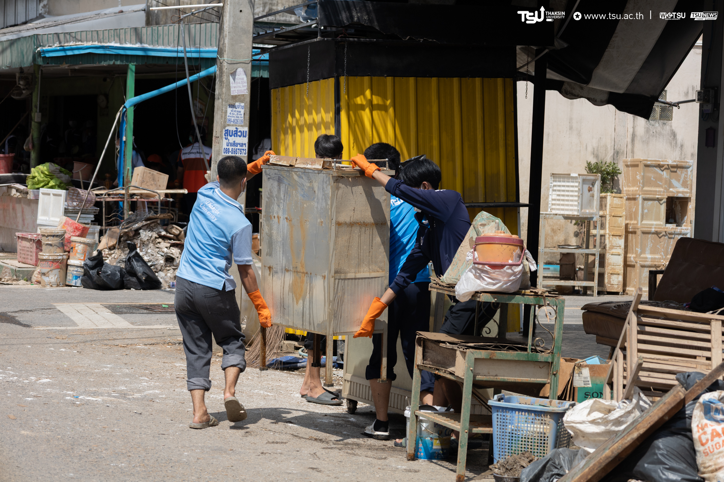 "TSU บวร Wash" จิตอาสาลงเคลียร์พื้นที่หลังน้ำลดร่วมกับท้องถิ่นและประชาชนเก็บกู้เศษวัสดุ เฟอร์นิเจอร์ที่ชำรุด ต้นไม้ล้ม ตะกอนดิน และทำความสะอาดพื้นที่สาธารณะ