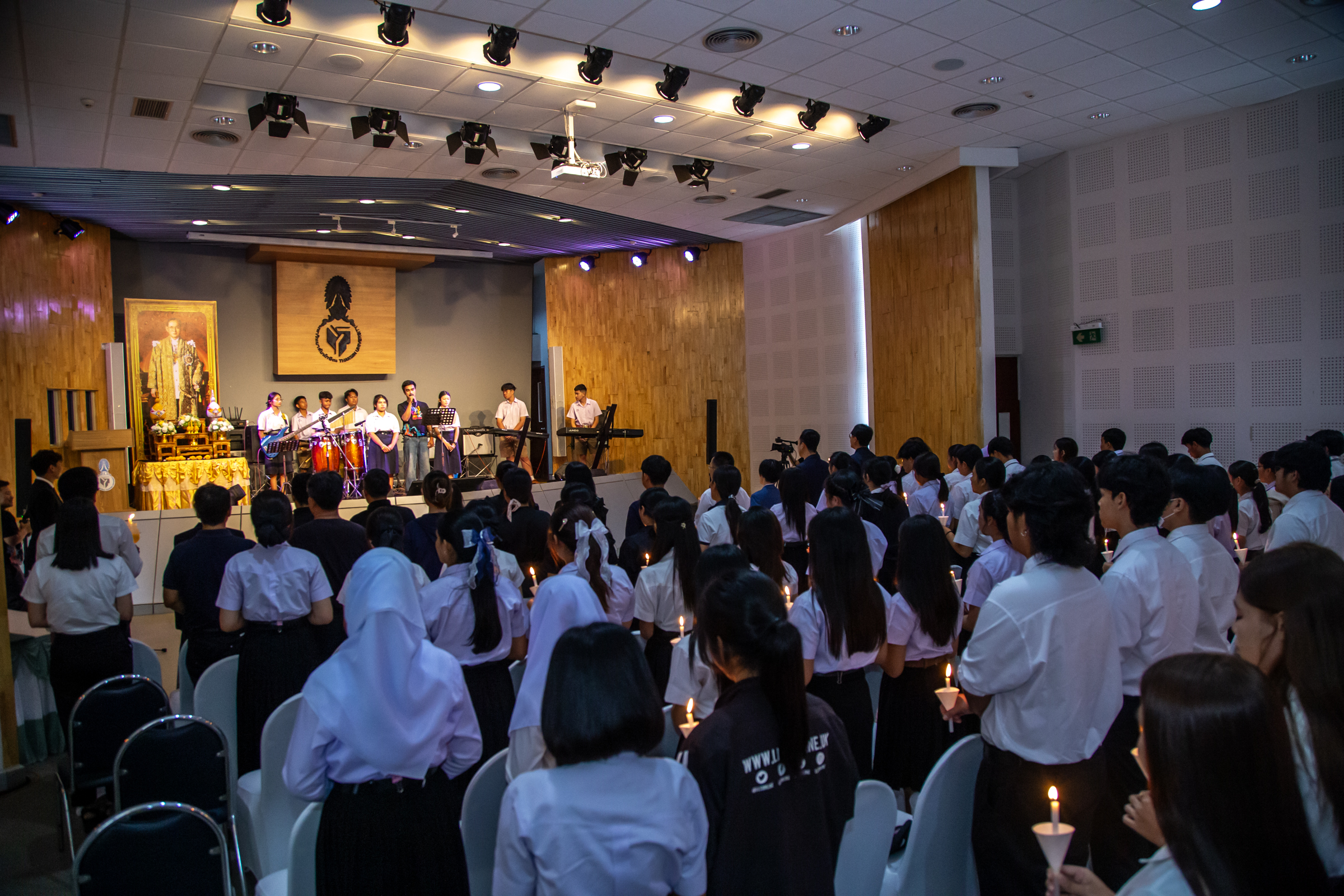 ช่วงค่ำ ผู้บริหาร บุคลากร นิสิต และประชาชนร่วมกันจัดเตรียมพื้นที่สำหรับประกอบพิธีจุดเทียนน้อมรำลึก ก่อนร่วมกันจุด “แสงเทียนแห่งความภักดี” ส่องสว่างไปทั่วบริเวณทักษิณาคาร เพื่อรำลึกในพระมหากรุณาธิคุณของในหลวงรัชกาลที่ 9 ท่ามกลางบรรยากาศที่สงบ งดงาม และเปี่ยมด้วยความสำนึกในพระมหากรุณาธิคุณอย่างหาที่สุดมิได้