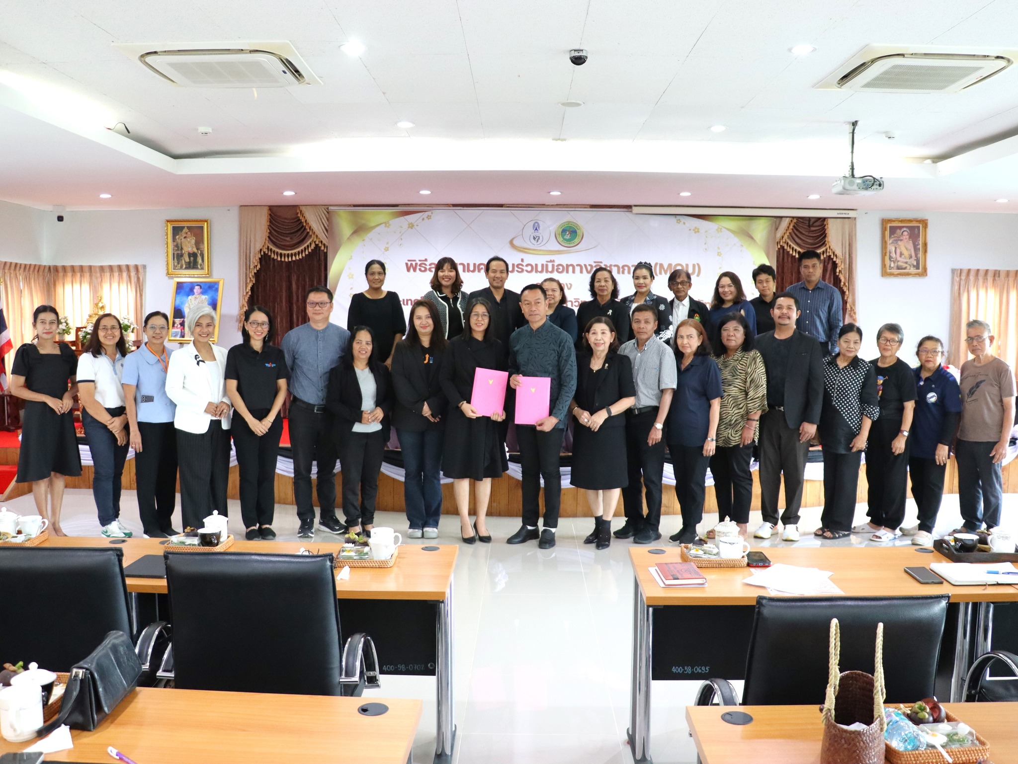 พิธีลงนามบันทึกความเข้าใจความร่วมมือทางวิชาการ โครงการ “เพิ่มสุขอยู่ที่บ้าน (Happiness @Home)” เพื่อส่งเสริมและพัฒนาทักษะอาชีพของผู้สูงอายุ ผ่านกิจกรรมเกษตรเพื่อสุขภาพ การบริการวิชาการ และการสร้างแหล่งเรียนรู้ต้นแบบ ภายใต้แนวคิด TSU Community Hub โดยมุ่งยกระดับคุณภาพชีวิต สร้างรายได้ และขับเคลื่อนเศรษฐกิจฐานรากอย่างยั่งยืน พร้อมทั้งบูรณาการการเรียนการสอน การวิจัย และนวัตกรรมของมหาวิทยาลัยให้ตอบโจทย์การพัฒนาชุมชนอย่างเป็นรูปธรรม โครงการดังกล่าวจัดขึ้น ณ เทศบาลตำบลแม่ขรี อำเภอตะโหมด จังหวัดพัทลุง โดยมีผู้บริหาร บุคลากร นิสิต และภาคีเครือข่ายในพื้นที่เข้าร่วมกิจกรรมอย่างพร้อมเพรียง