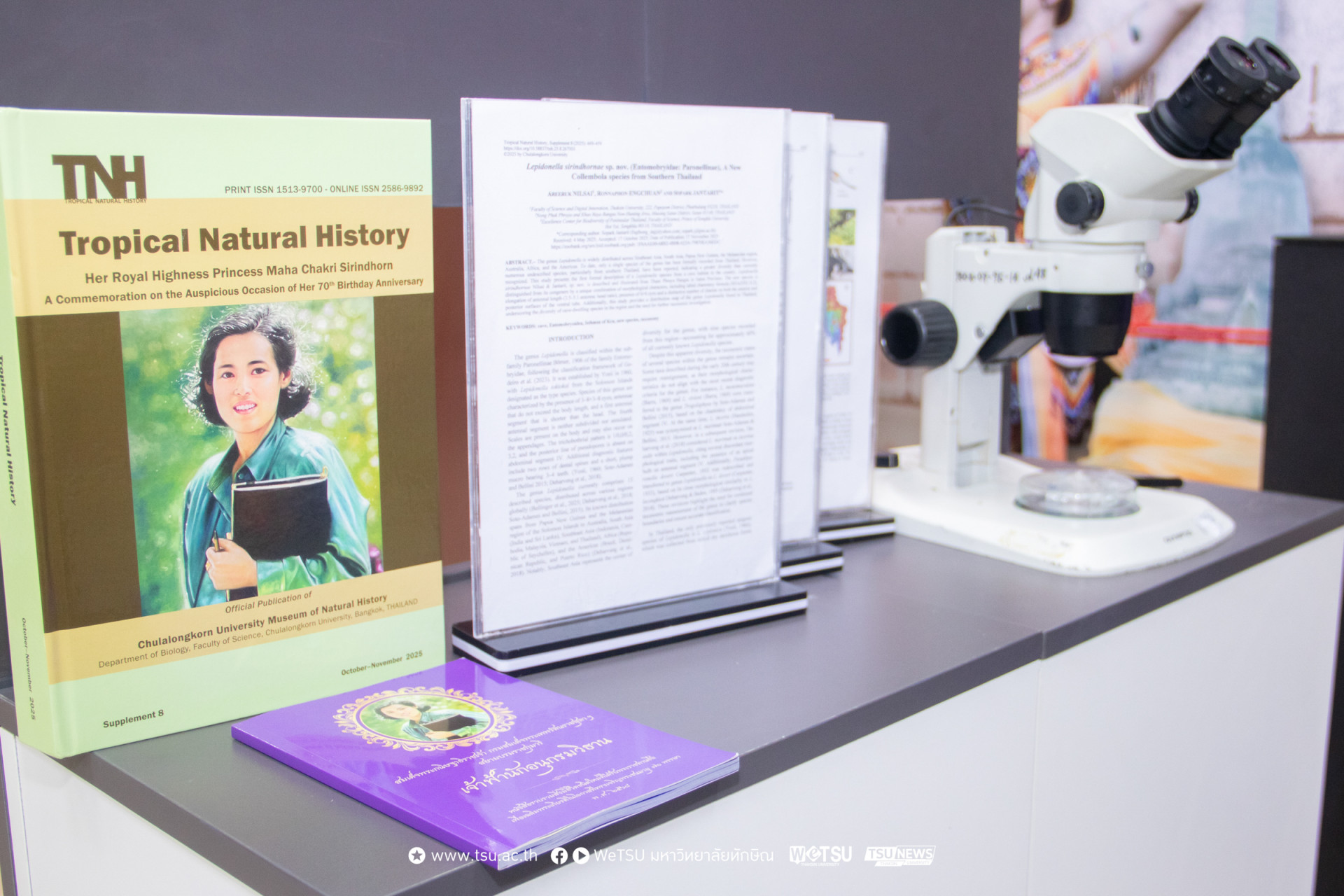 นอกจากนี้ ยังมีการบรรยายพิเศษเรื่อง “แมลงหางดีดถ้ำเจ้าฟ้า” ชนิดใหม่ของโลก ซึ่งเป็นดัชนีชี้วัดสภาพแวดล้อมและการปรับตัวของสิ่งมีชีวิตในระบบนิเวศถ้ำ โดยอาจารย์ ดร.อารีรักษ์ นิลสาย คณะวิทยาศาสตร์และนวัตกรรมดิจิทัล มหาวิทยาลัยทักษิณ