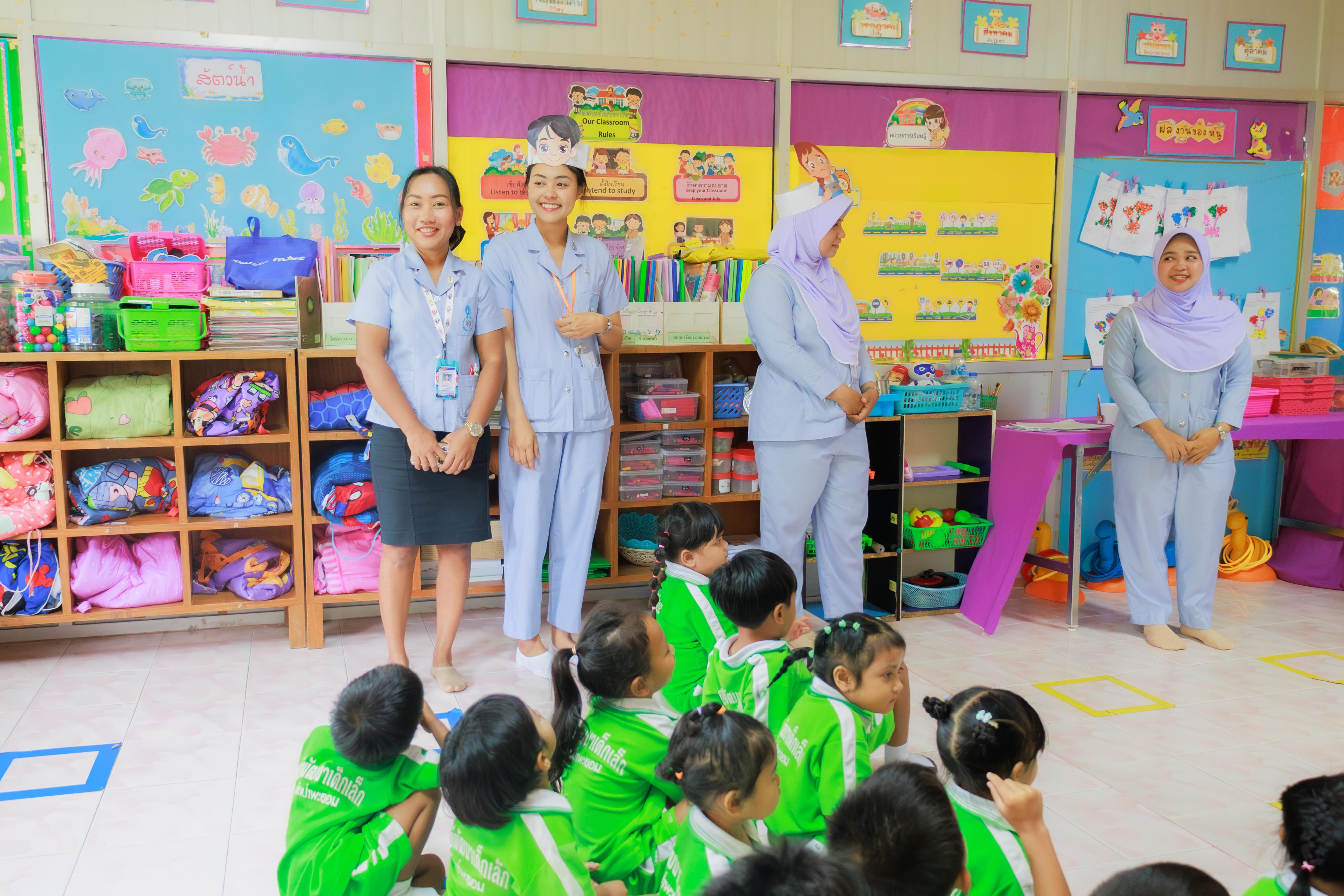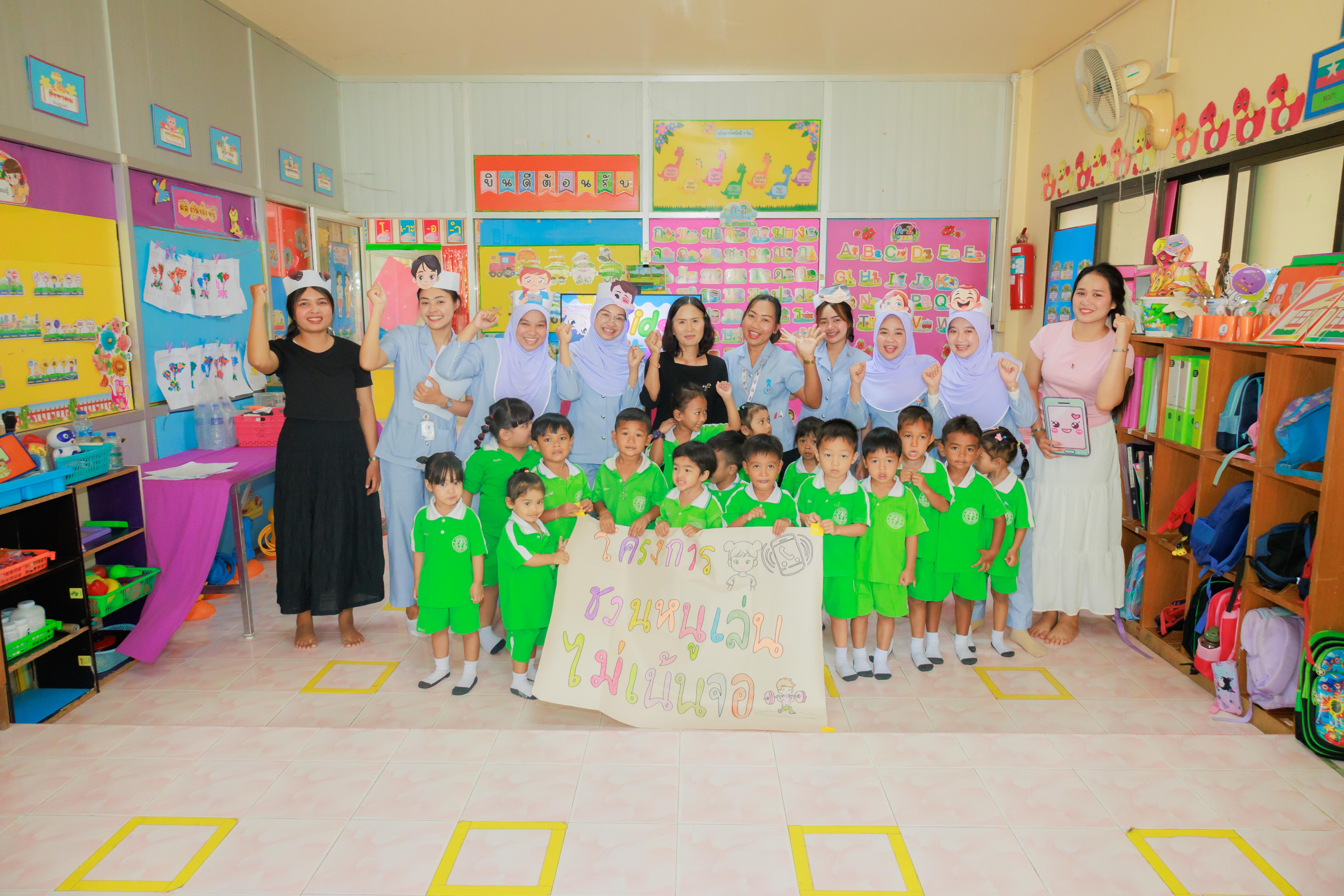 นิสิตพยาบาลศาสตร์ มหาวิทยาลัยทักษิณ นำความรู้สู่การปฏิบัติจริง ลงพื้นที่จัดกิจกรรมสร้างเสริมสุขภาพให้เด็กปฐมวัย ที่ศูนย์พัฒนาเด็กเล็กบ้านป่าพะยอม อำเภอป่าพะยอม จังหวัดพัทลุง ภายใต้รายวิชา "ปฏิบัติการพยาบาลเพื่อสร้างเสริมสุขภาพ" เชื่อมโยงห้องเรียนสู่ชุมชน พัฒนาทักษะการทำงานในอนาคต