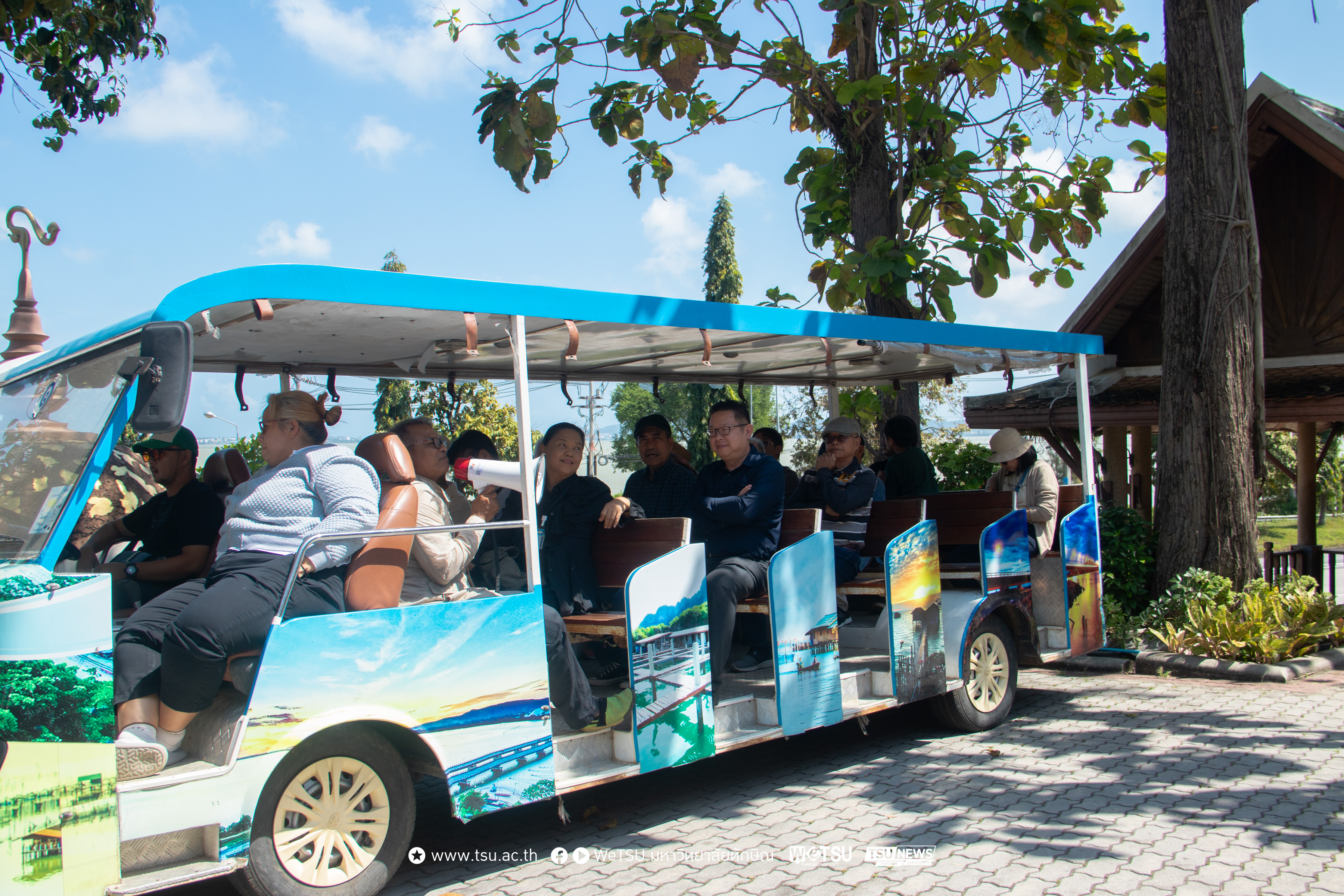 เราตัดสินใจกระโดดขึ้นรถรางนำเที่ยวของพิพิธภัณฑ์คติชนวิทยา สถาบันทักษิณคดีศึกษา มหาวิทยาลัยทักษิณ โดยไม่ลังเล เมื่อผู้คนเต็มคันรถรางสองคันเคลื่อนตัวออกจากพิพิธภัณฑ์อย่างช้า ๆ แล่นเข้าสู่ชุมชนเกาะยอ สองข้างทางขนาบด้วยเชิงเขาและทะเลยามบ่าย ผืนน้ำระยิบระยับเป็นประกายเหมือนเพชรต้องแสง ริ้วระลอกคลื่นเล็ก ๆ ร่ายรำเมื่อสายลมพัดผ่านแสงอาทิตย์กระทบกระชังเลี้ยงปลากะพงที่กระจัดกระจายอยู่ริมฝั่ง อาชีพของชาวบ้านที่นี้ส่วนใหญ่แล้วทำการประมงหรือทำสวน หนึ่งในนั้นคือการปลูกสวา ภาษากลางเรียกว่า “ละมุด” เสียงของพี่บุญเลิศ นักวิชาการของสถาบันทักษิณคดีศึกษา ผู้นำชมดังขึ้นผ่านลำโพงขนาดเล็กแบบพกพาที่เขาสะพายแนบลำตัว พร้อมไมโครโฟนแนบหู “เกาะยอ” ชุมชนกลางทะเลสาบสงขลา น่าหลงใหลชวนมอง