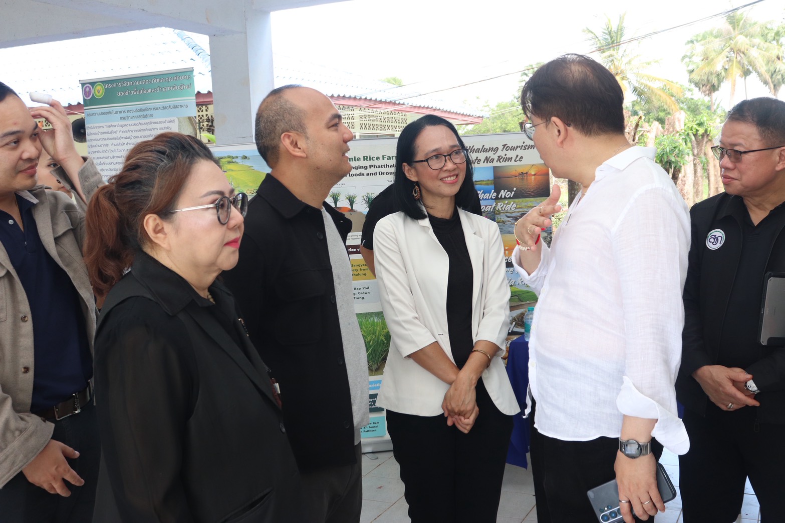 ต่อมาในวันที่ 12 กุมภาพันธ์ 2569 คณะ สกสว. ลงพื้นที่ติดตามความก้าวหน้า ณ โรงเรียนวัดปากประ ตำบลลำปำ อำเภอเมืองพัทลุง จังหวัดพัทลุง โดยมี รองศาสตราจารย์ ดร.สมัคร แก้วสุกแสง รองอธิการบดีฝ่ายวิจัยและนวัตกรรม มหาวิทยาลัยทักษิณ พร้อมด้วย ผู้ช่วยศาสตราจารย์ ดร.นันทิยา พนมจันทร์ หัวหน้าโครงการวิจัย “การบริหารจัดการข้าวนาริมเลจังหวัดพัทลุงภายใต้สภาวะน้ำท่วมและน้ำแล้ง เพื่อการเพิ่มรายได้อย่างยั่งยืน” ซึ่งได้รับการสนับสนุนทุนวิจัยจากสำนักงานการวิจัยแห่งชาติ (วช.) ร่วมนำเสนอผลการดำเนินงานเชิงพื้นที่