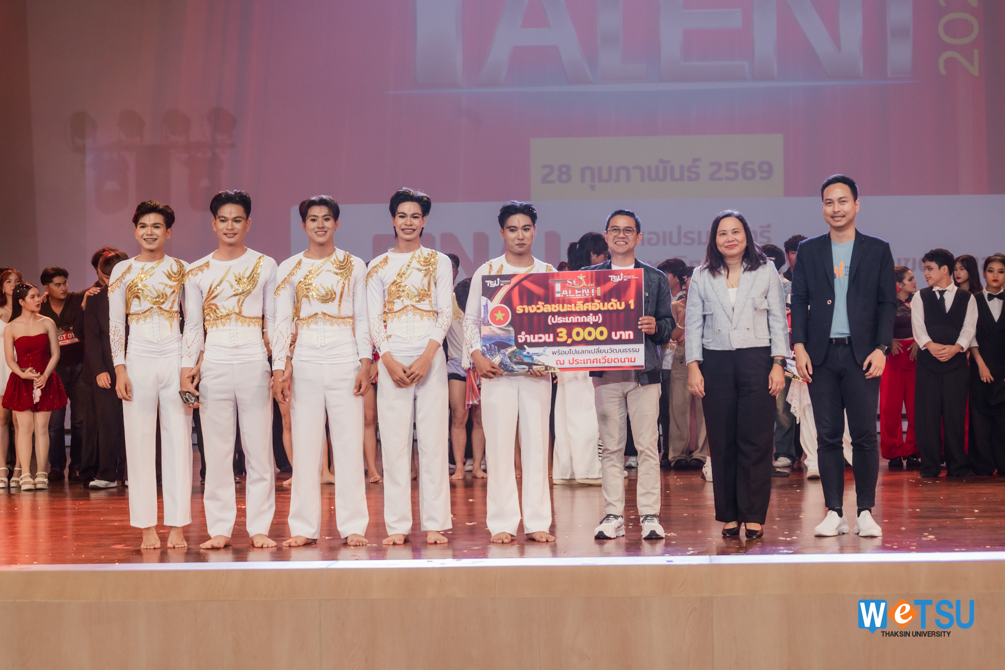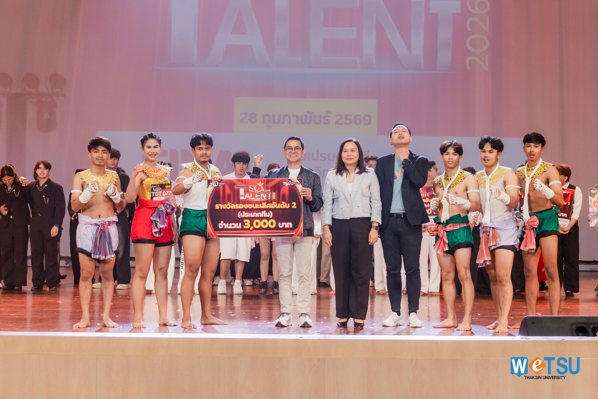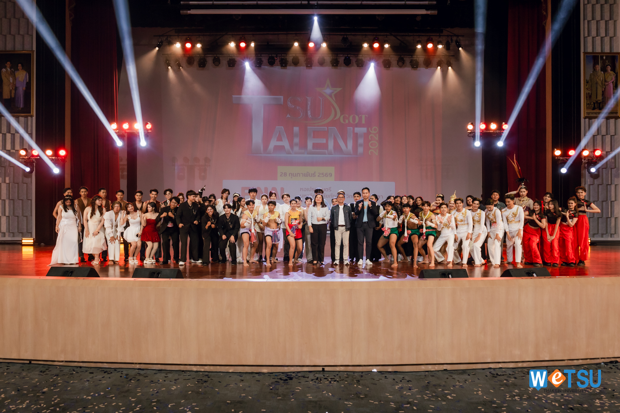 เวทีลุกเป็นไฟ!! TSU GOT TALENT 2026 รอบ FINAL จุดประกายพลังสร้างสรรค์นิสิตสู่เวทีนานาชาติ มหาวิทยาลัยทักษิณจัดเวทีเปิดพื้นที่ให้นิสิตแสดงศักยภาพอย่างเต็มที่ ท่ามกลางบรรยากาศคึกคักและเสียงเชียร์กึกก้อง ณ หอเปรมดนตรี วิทยาเขตสงขลา เมื่อวันที่ 28 กุมภาพันธ์ 2569 พร้อมคัดเลือกตัวแทนเข้าร่วมกิจกรรมแลกเปลี่ยนวัฒนธรรมด้านการแสดงในระดับนานาชาติ