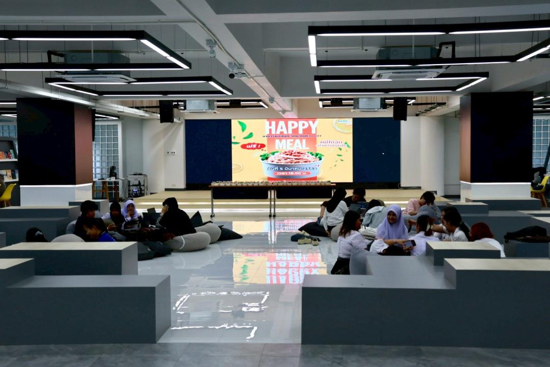 ม้านั่ง โต๊ะหินอ่อน โต๊ะไม้ และพื้นที่โล่งที่ออกแบบให้รองรับการรวมกลุ่ม ล้วนเอื้อต่อการทำงานร่วมกัน อีกทั้งสัญญาณอินเทอร์เน็ตไร้สายที่ครอบคลุมทั่วบริเวณ และจุดเชื่อมต่อไฟฟ้าที่เพียงพอ ทำให้พื้นที่กิจกรรมแห่งนี้ไม่ต่างจากห้องเรียนกลางแจ้งที่เปิดตลอดเวลา พื้นที่จึงไม่ได้เป็นเพียงฉากหลังของกิจกรรม แต่เป็นองค์ประกอบสำคัญที่ทำให้การเรียนรู้และการสร้างความสัมพันธ์ดำเนินไปได้อย่างต่อเนื่อง