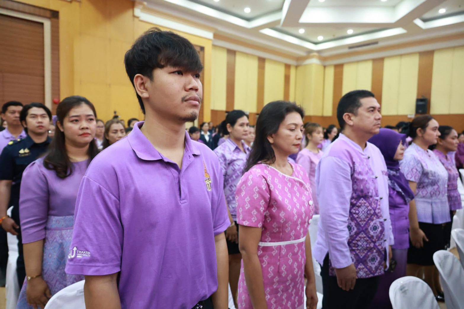 สำหรับการเข้าร่วมพิธีในครั้งนี้ บุคลากรได้พร้อมใจกันแต่งกายด้วยชุดผ้าไทยโทนสีม่วงอย่างพร้อมเพรียงเพื่อเฉลิมพระเกียรติในโอกาสวันคล้ายวันพระราชสมภพ นอกจากพิธีการในช่วงเช้าแล้ว ภายในงานยังมีกิจกรรมส่งเสริมวัฒนธรรมที่น่าสนใจ อาทิ การแสดงจากศิลปินแห่งชาติ โดยผศ.ธรรมนิตย์ นิคมรัตน์ การแสดงมโนราห์และหนังตะลุง รวมถึงนิทรรศการเฉลิมพระเกียรติและการสาธิตภูมิปัญญาท้องถิ่น ซึ่งสอดคล้องกับภารกิจของสถาบันทักษิณคดีศึกษาในการสืบสานและอนุรักษ์มรดกทางวัฒนธรรมของชาติให้คงอยู่สืบไป
