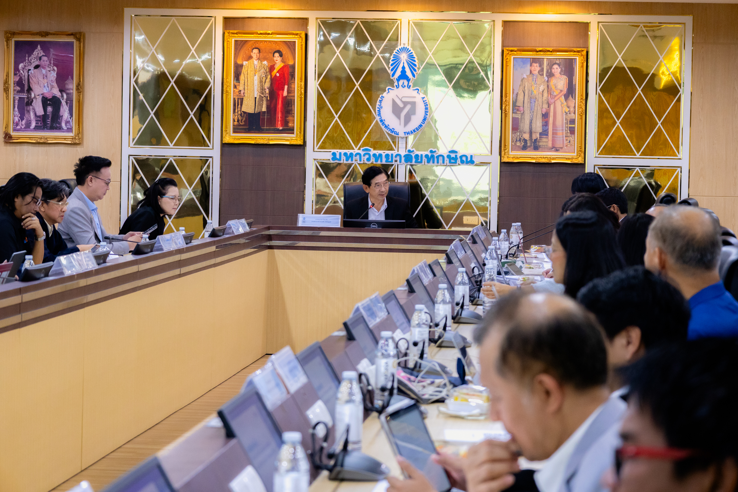 มหาวิทยาลัยทักษิณ ดำเนินการประชุมสภามหาวิทยาลัยทักษิณ ครั้งที่ 3/2569 เมื่อวันเสาร์ที่ 4 เมษายน 2569 ณ อาคาร 50 ปี มหาวิทยาลัยทักษิณ โดยการประชุมครั้งนี้มีวาระสำคัญ อาทิ การพิจารณาประเด็นเชิงนโยบายด้านสถานะทางการเงินและแนวทางสร้างความมั่นคงทางการเงินของมหาวิทยาลัย การพิจารณาการสรรหาอธิการบดี การพิจารณาร่างประกาศมหาวิทยาลัยทักษิณ เรื่อง ชื่อและอักษรย่อสำหรับสาขาวิชา (ฉบับที่ 6) พ.ศ. 2569 รวมถึงการพิจารณาร่างระเบียบมหาวิทยาลัยทักษิณ ว่าด้วยกองทุนสวัสดิการนิสิต พ.ศ. 2569