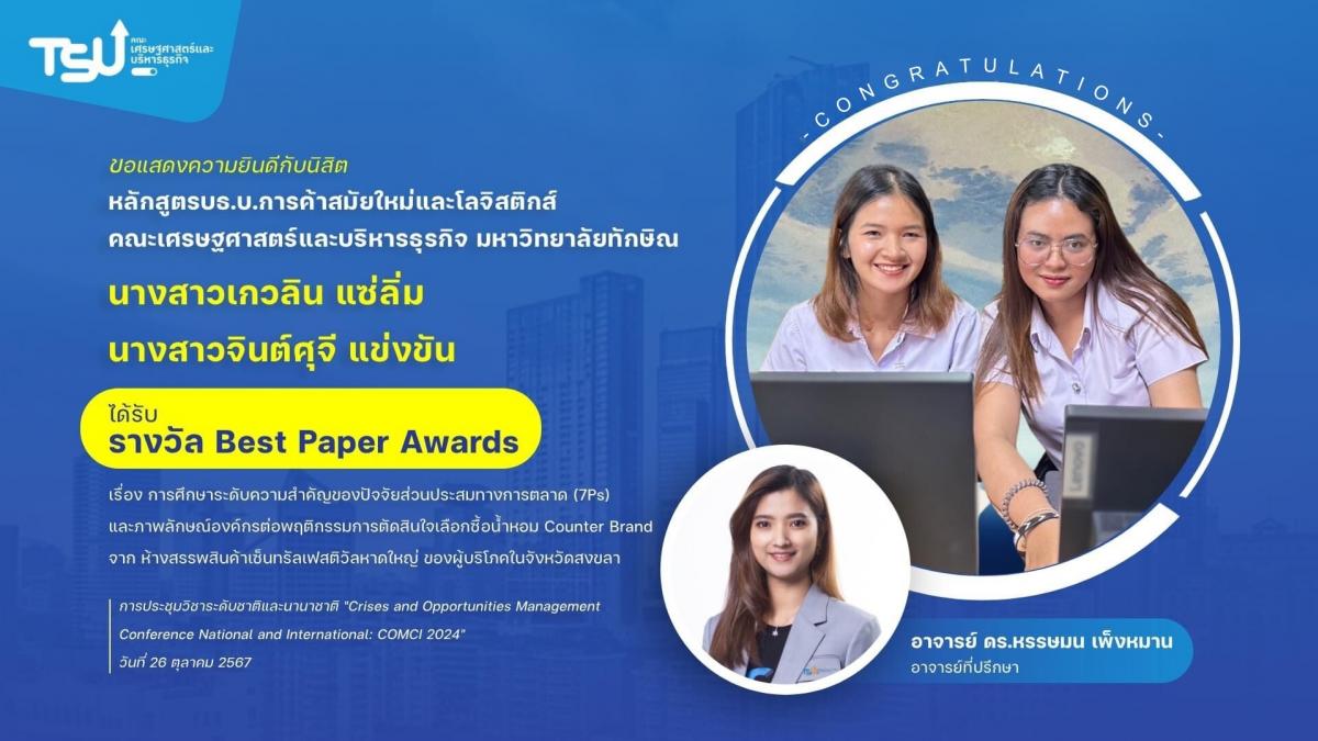 ขอแสดงความยินดีกับนิสิตหลักสูตรเศรษฐศาสตรบัณฑิตที่ได้รับรางวัลบทความดีเด่น (Best...