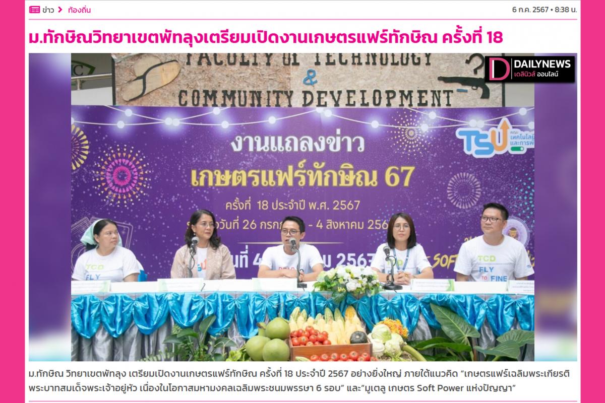 ยอดสมัครและยืนยันสิทธิ TCAS 67 รอบ Portfolio ม.ทักษิณ พุ่งสูงในภาคใต้...
