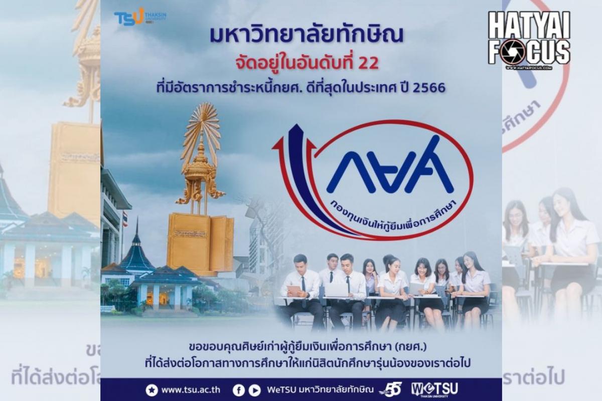 มหาวิทยาลัยทักษิณ จัดอยู่ในอันดับที่ 22 ชำระหนี้กยศ. ดีที่สุดในประเทศ ปี2566...