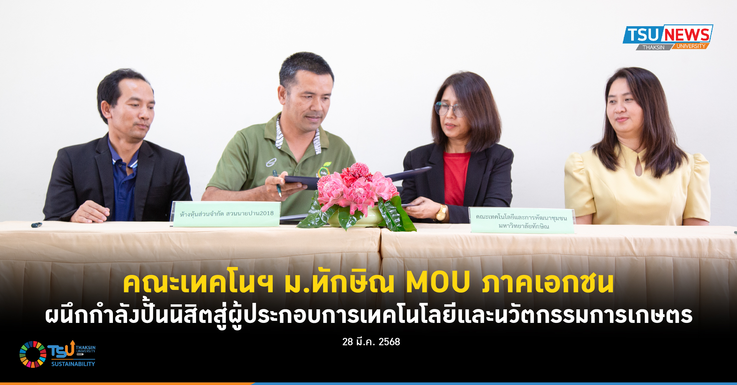 คณะเทคโนฯ ม.ทักษิณ MOU ภาคเอกชน ผนึกกำลังปั้นนิสิตสู่ผู้ประกอบการเทคโนโลยีและนวั...